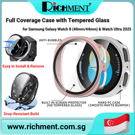 【✅SG Brand🔥】RICHMENT All-in-One Protective Case with Tempered Glass for Samsung Galaxy Watch Ultra 2025 / Watch 8 40mm / 44mm – Full Coverage Anti-Drop Bumper Shell, HD Touch Screen, Easy Install