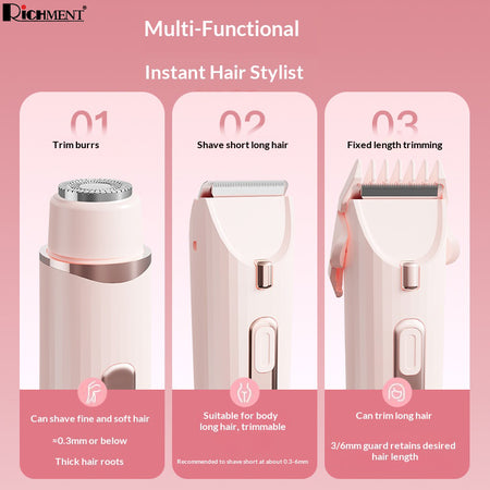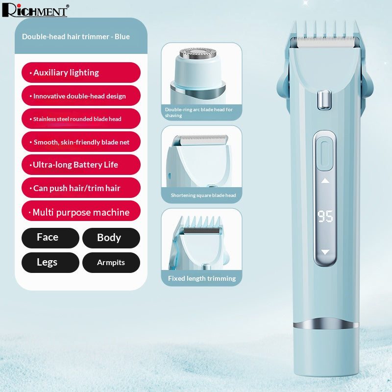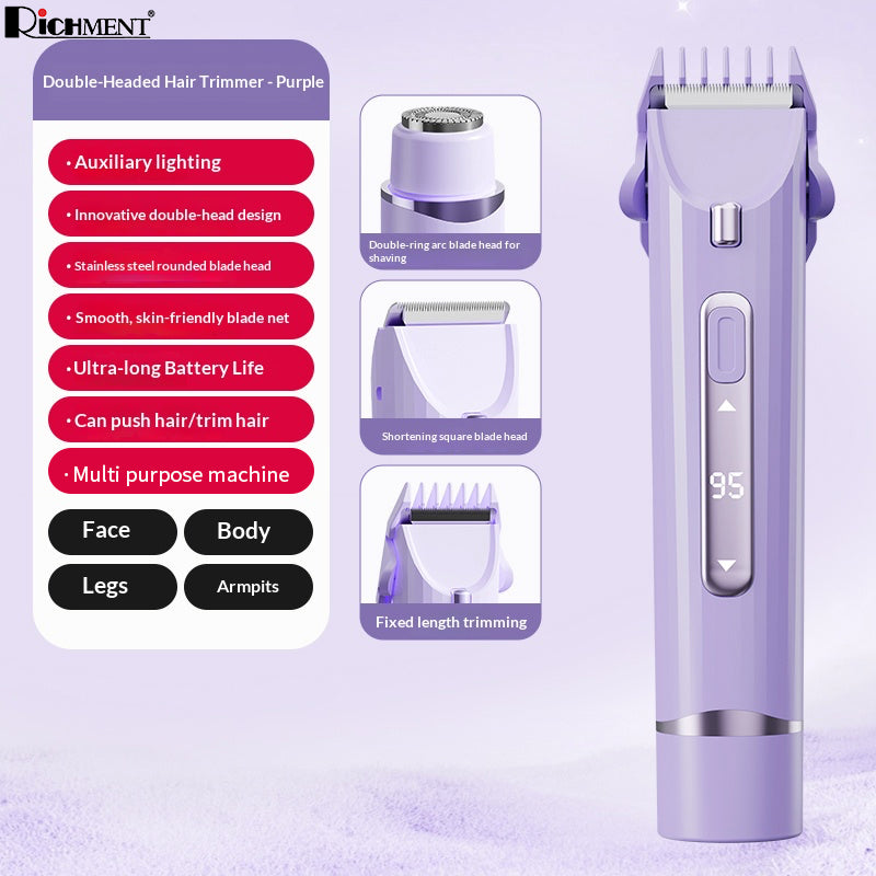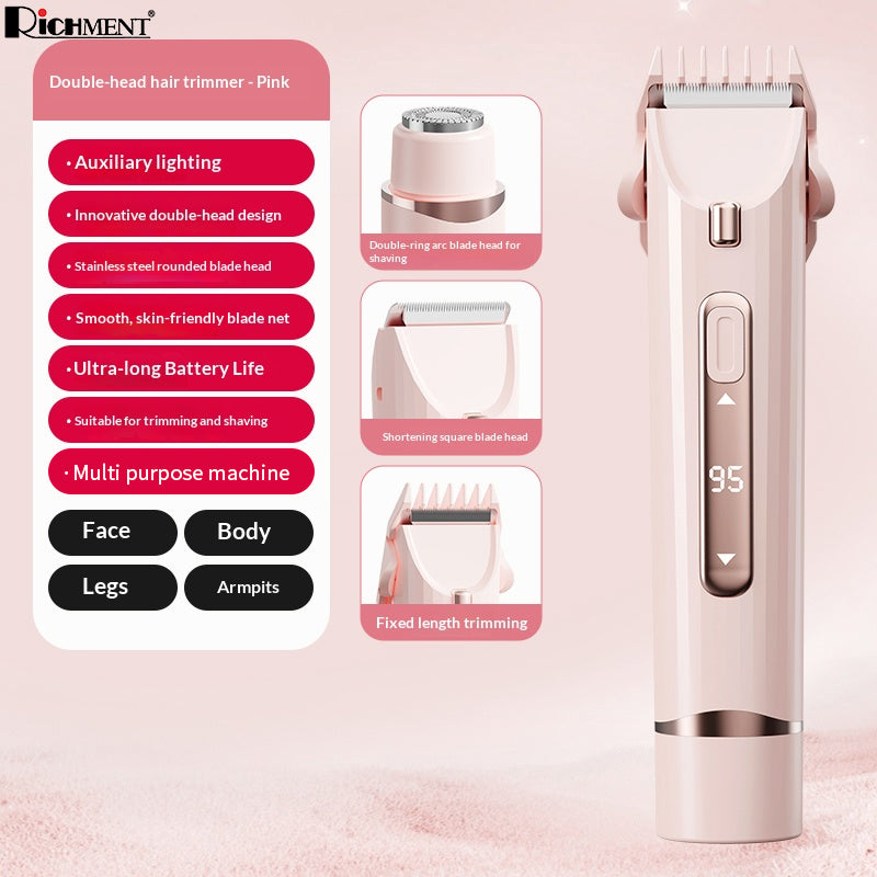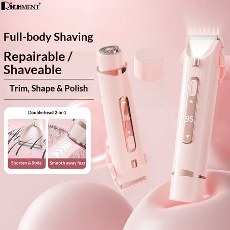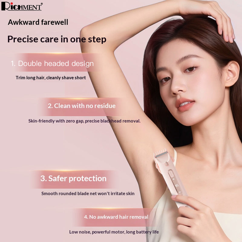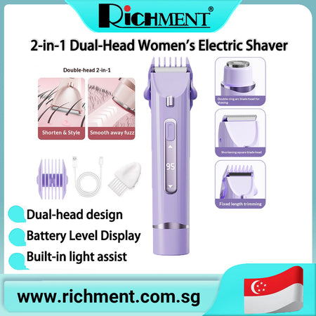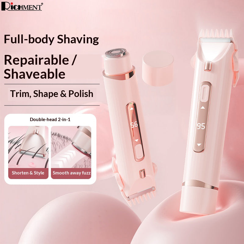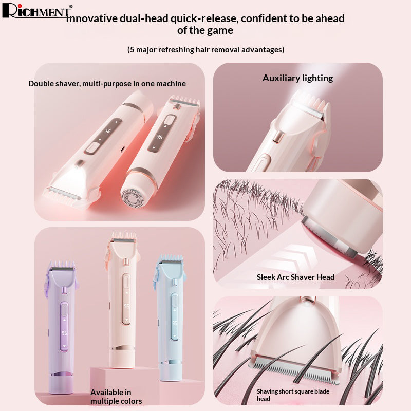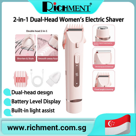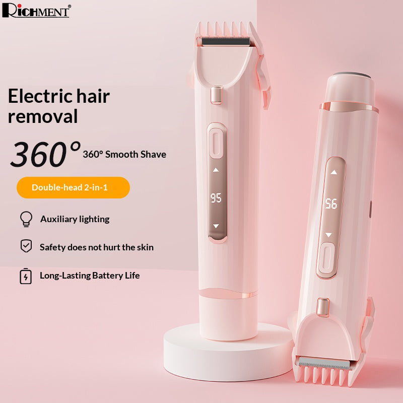ใโ SG Brand๐ฅใRICHMENT 2 in 1 Bikini Trimmer for Women, Dual Head Electric Shaver with LED Display, IPX7 Waterproof Body Pubic Hair Trimmer Rechargeable Womens Electric Razor for Armpit Leg Body Facial Wet & Dry Use