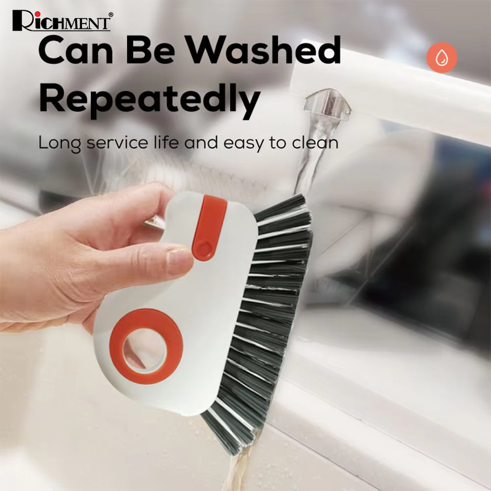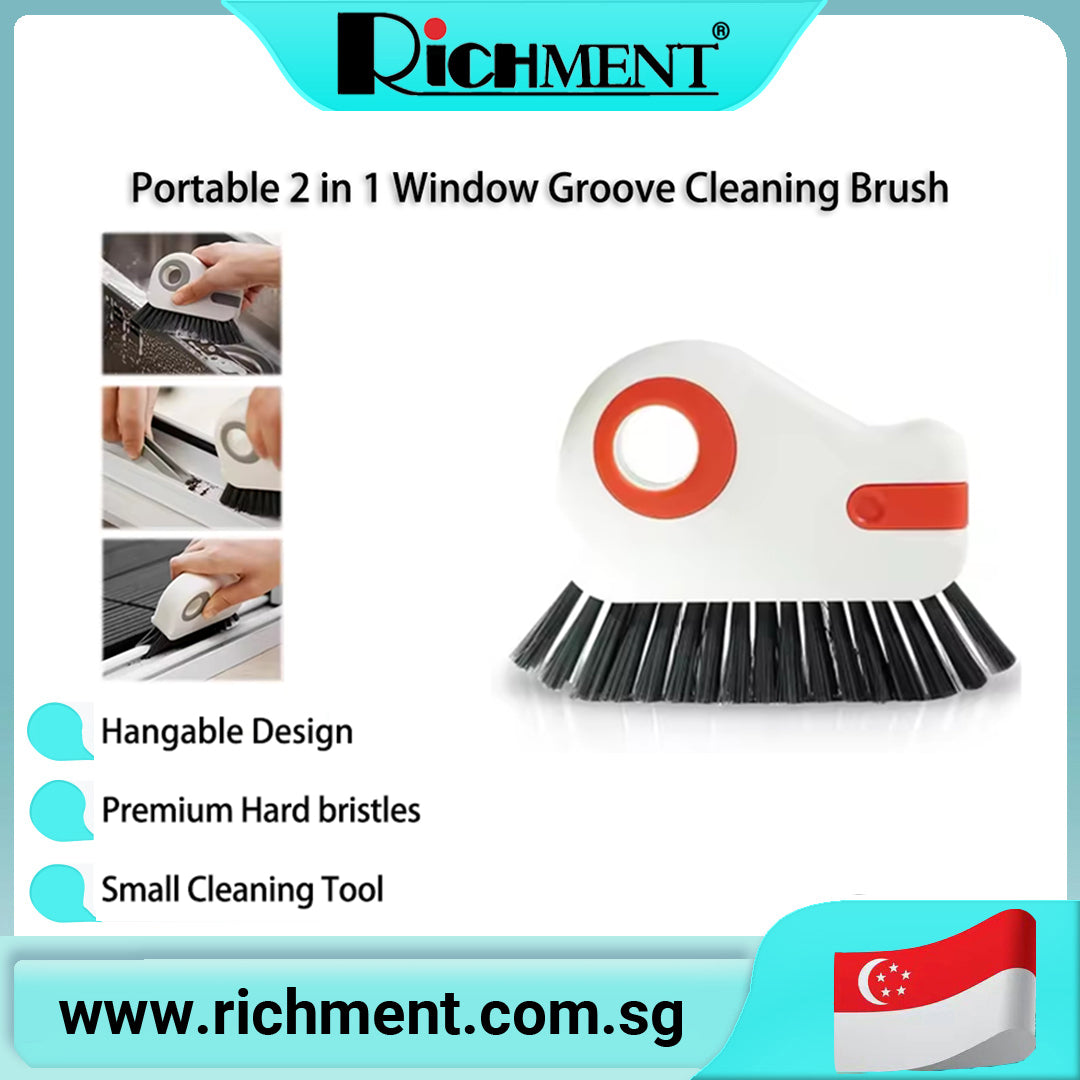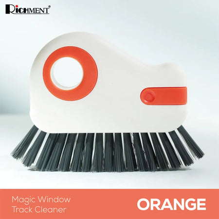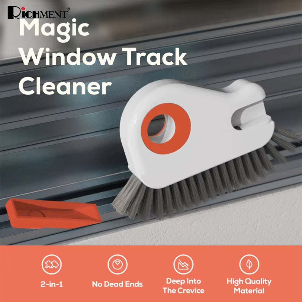 【✅SG Brand🔥】RICHMENT 2-in-1 Magic Window Track Cleaner Brush with Built-in Scraper, Curved Brush Head for Window Rails, Door Tracks & Narrow Gaps, Washable & Reusable