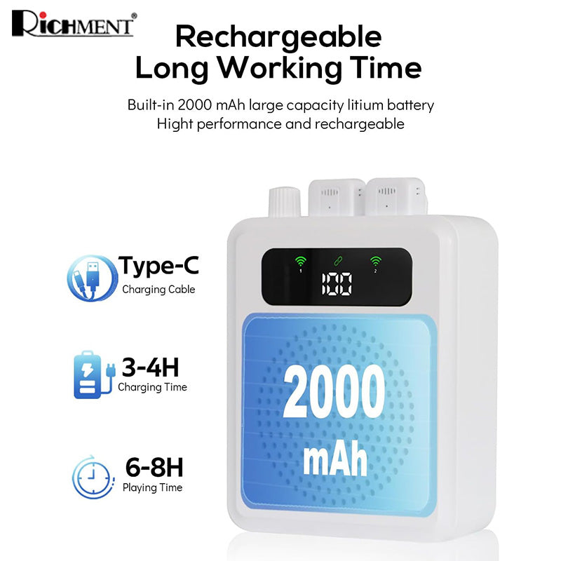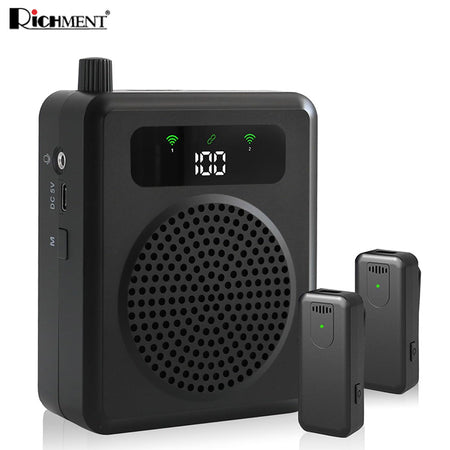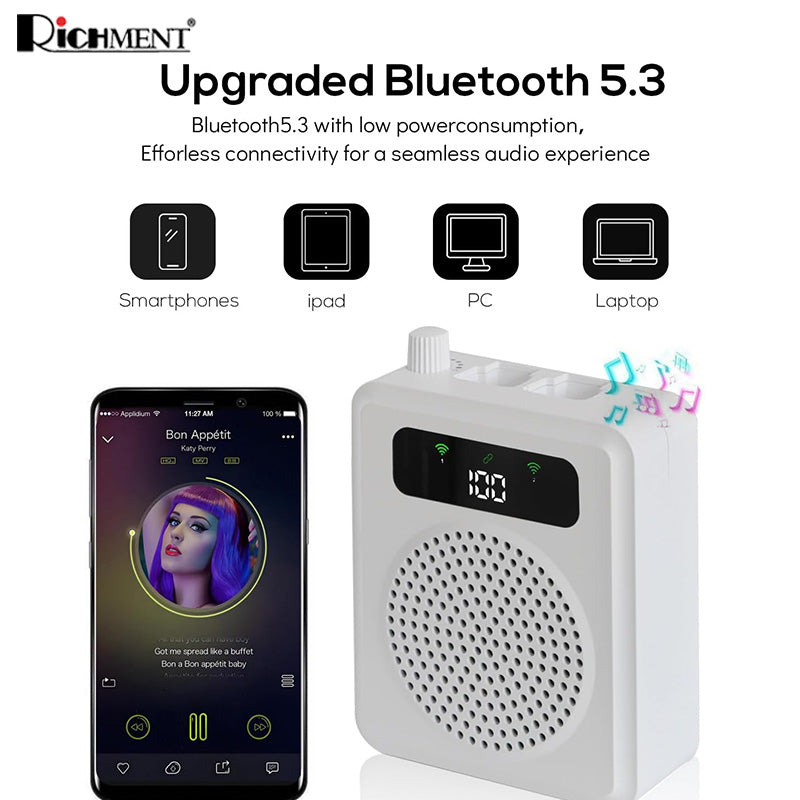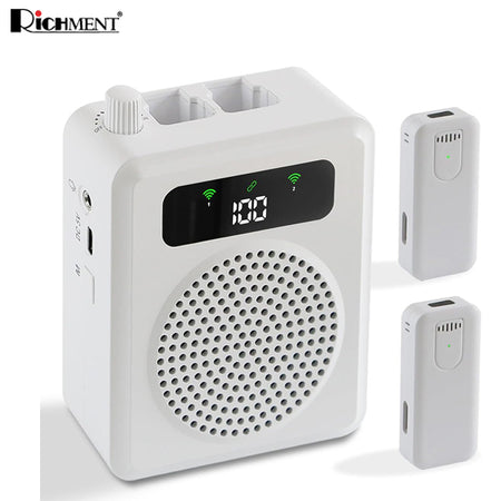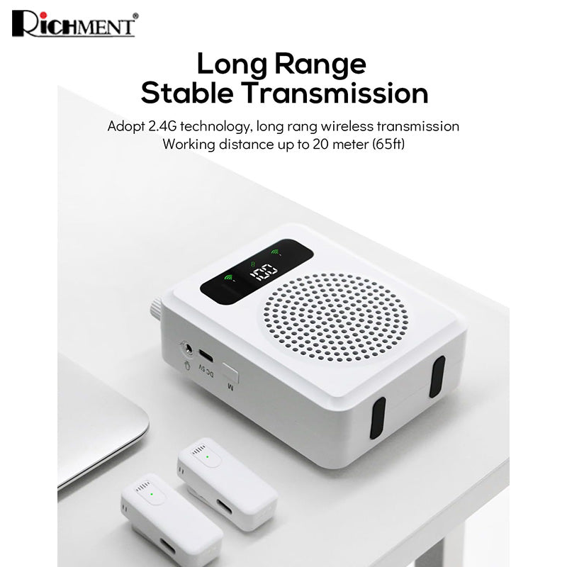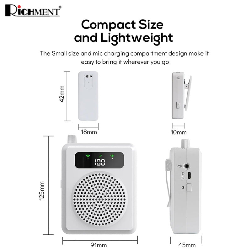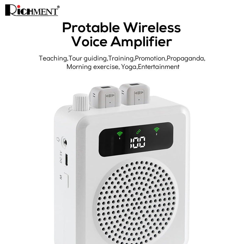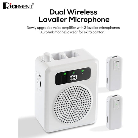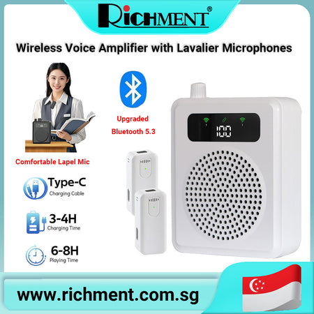 【✅SG Brand🔥】RICHMENT Portable Bluetooth 5.3 Voice Amplifier with Dual Wireless Lavalier Microphones, 2000mAh Rechargeable Battery, Clear 10W Sound, Long Range Stable Transmission, Lightweight Speaker for Teaching,Training,Tour Guiding,Yoga and Promotion