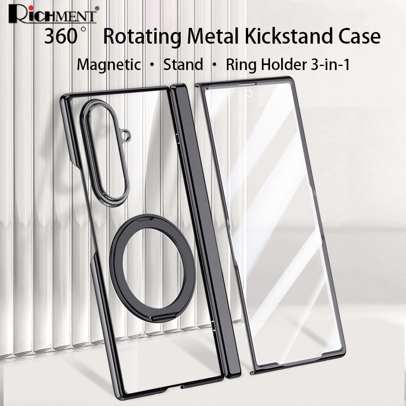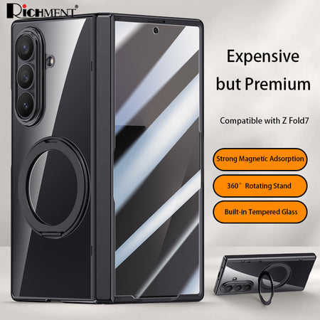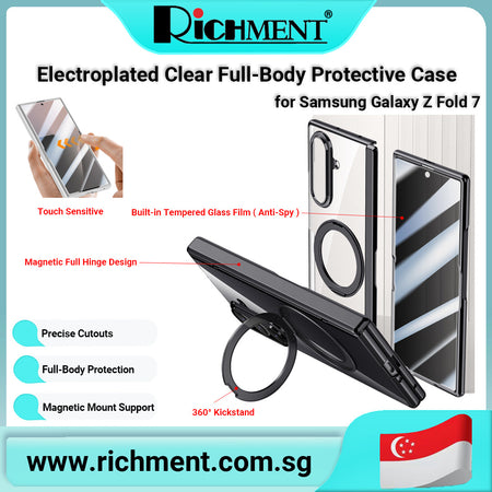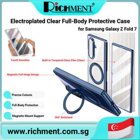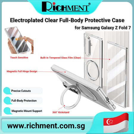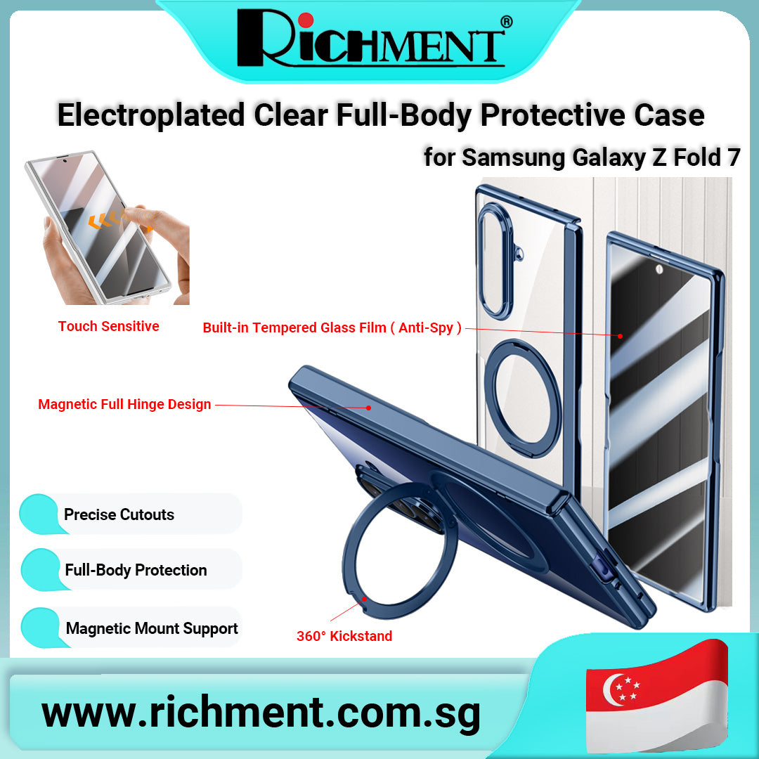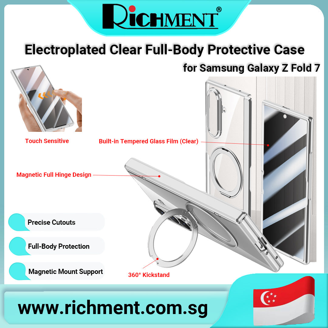 【✅SG Brand🔥】RICHMENT Electroplated Clear Full-Body Protective Case for Samsung Galaxy Z Fold7 with Built-in Tempered Glass Film, 360° Rotating Kickstand, Magnetic Mount Support, Touch Sensitive, Magnetic Full Hinge Design, Precise Cutouts