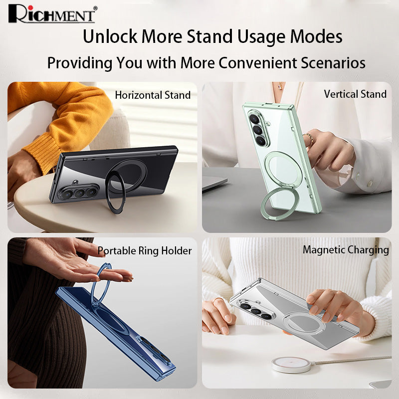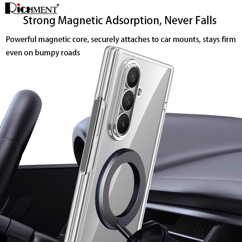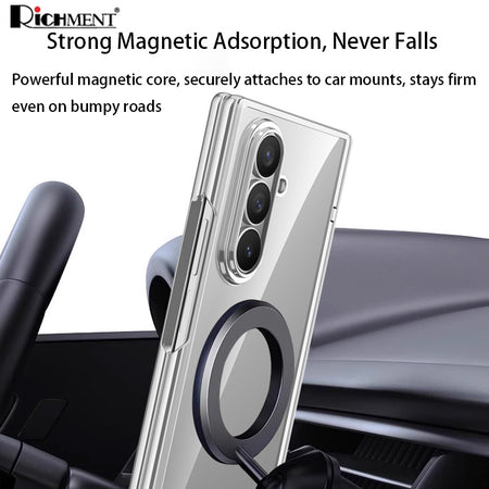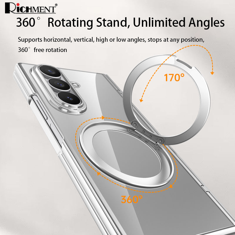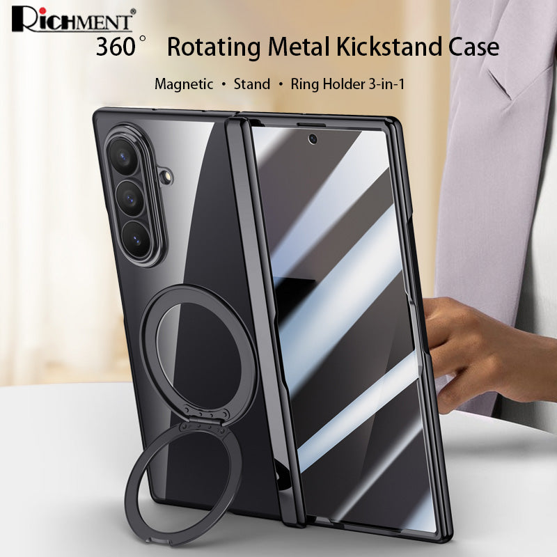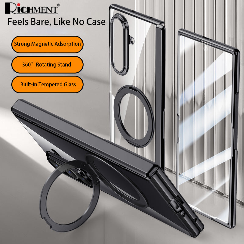 【✅SG Brand🔥】RICHMENT Electroplated Clear Full-Body Protective Case for Samsung Galaxy Z Fold7 with Built-in Tempered Glass Film, 360° Rotating Kickstand, Magnetic Mount Support, Touch Sensitive, Magnetic Full Hinge Design, Precise Cutouts