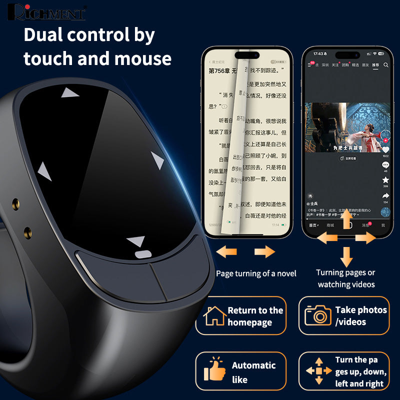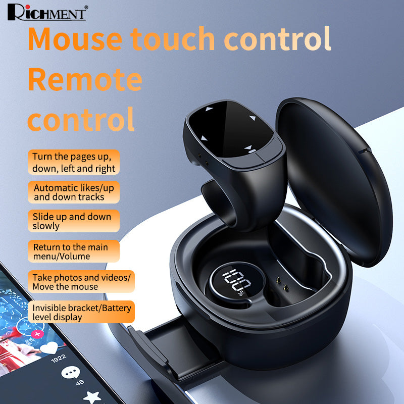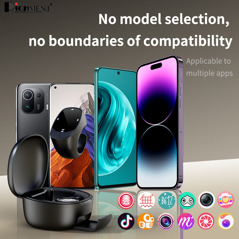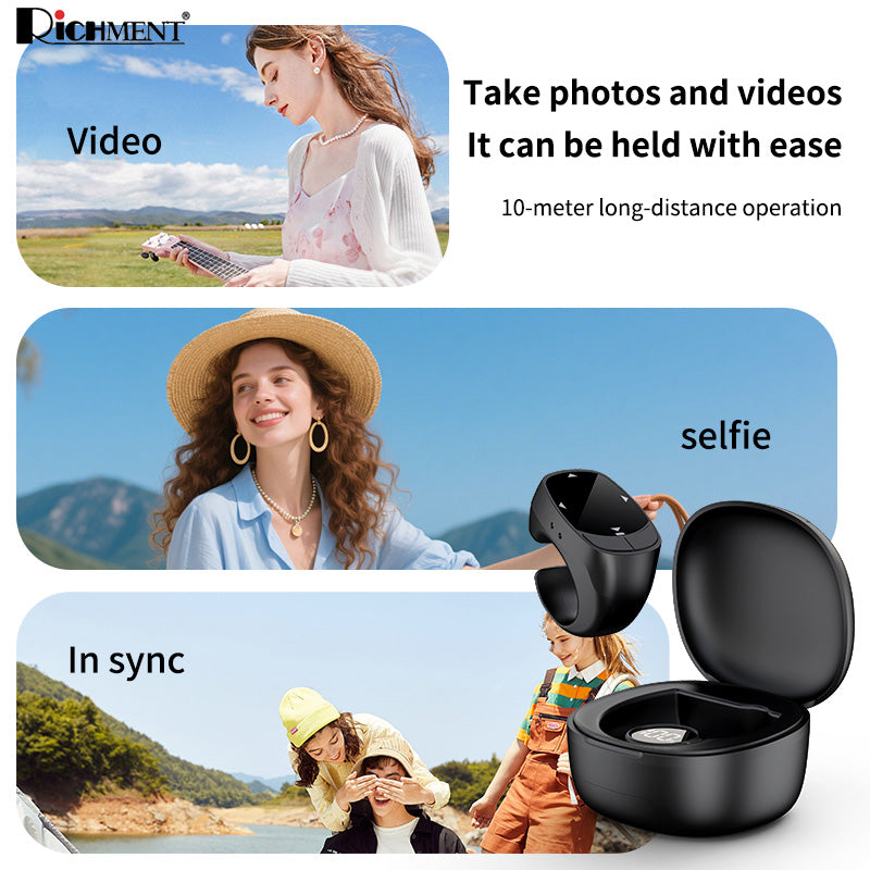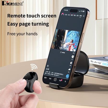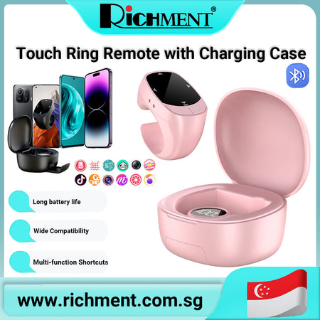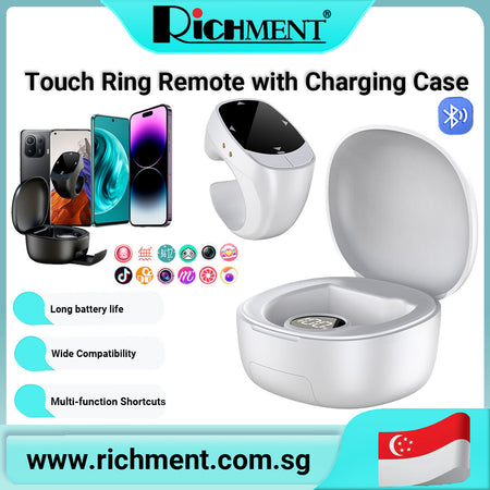【✅SG Brand🔥】RICHMENT Bluetooth 5.3 Smart Touch Ring Remote Control with Charging Case, Multi-Function Page Turner and Mouse Controller for Short Video, E-Book, Selfie, Music, and Camera – 10m Range, Hidden Stand, Long Battery Life