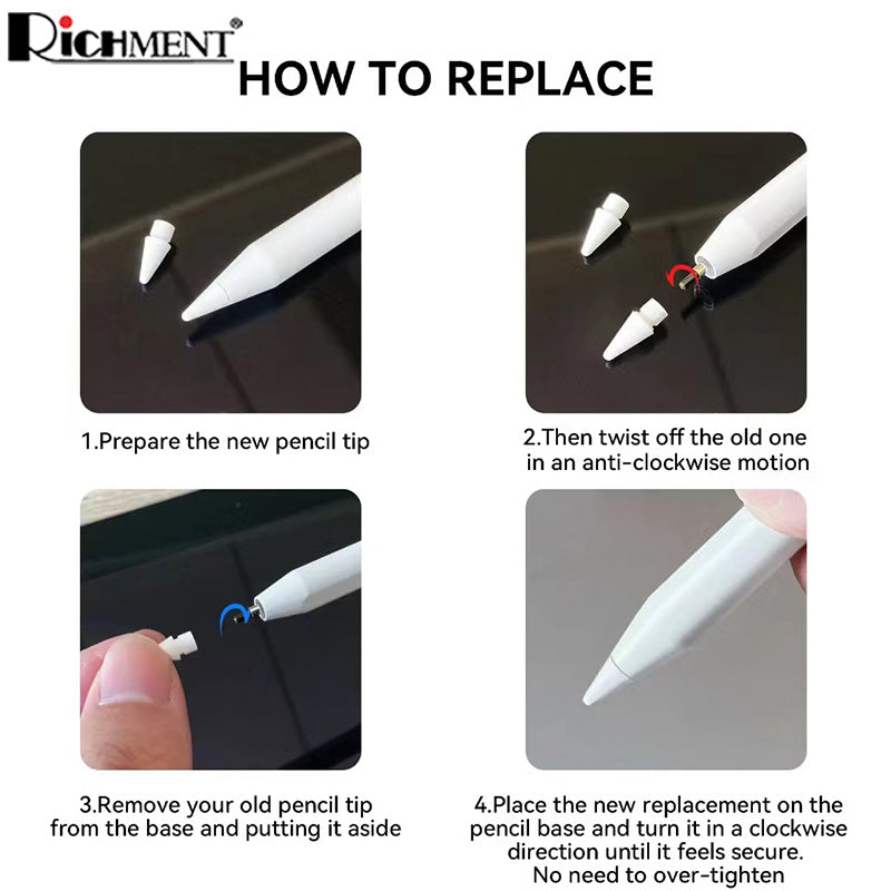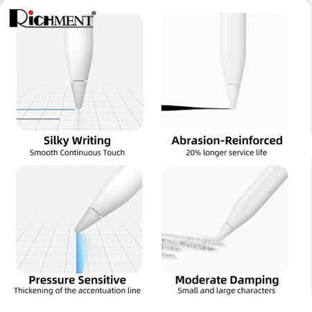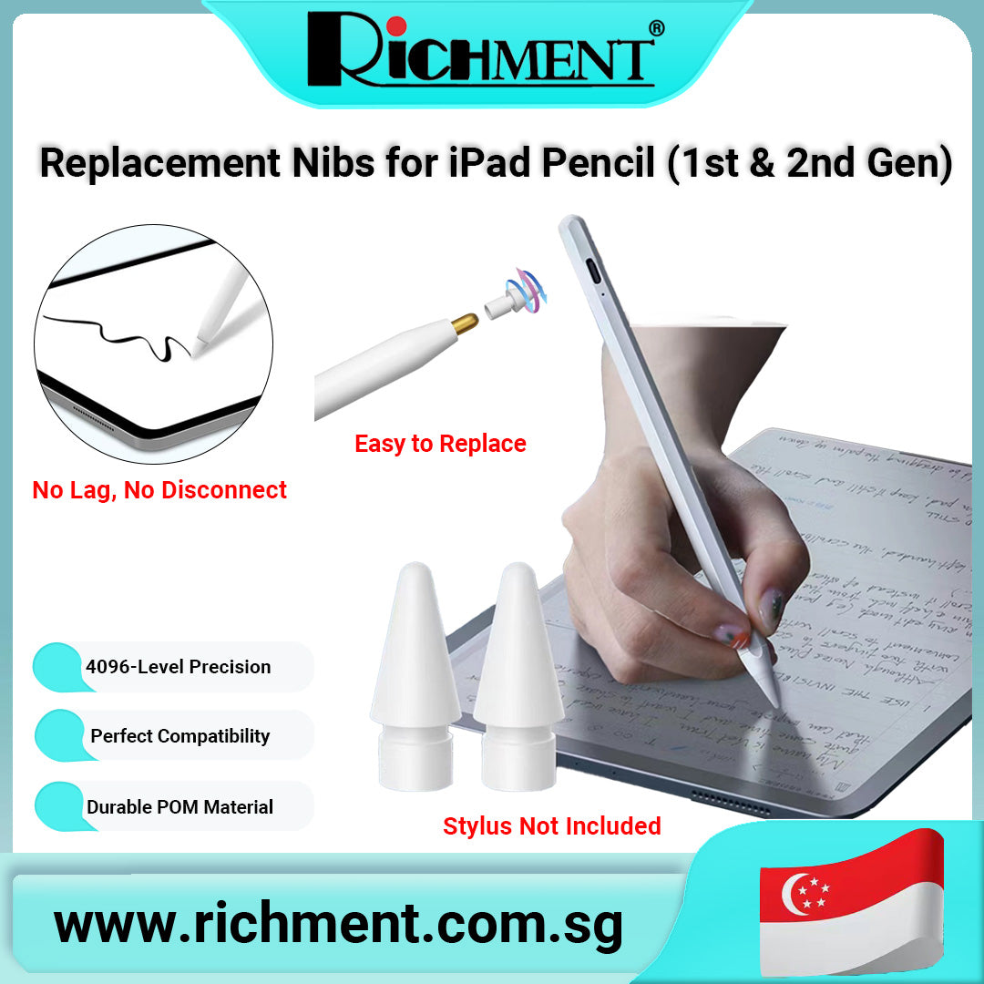 【✅SG Brand🔥】RICHMENT Stylus Pencil Replacement Tips for iPad 1st & 2nd Gen – High Precision Replacement Nibs for iPad Pro/Air Stylus, Pressure Sensitive & Smooth Writing & Drawing,Easy Twist-On Installation