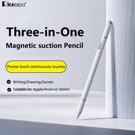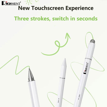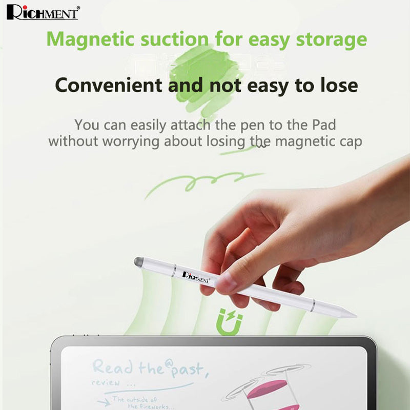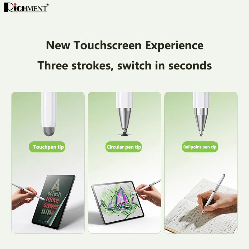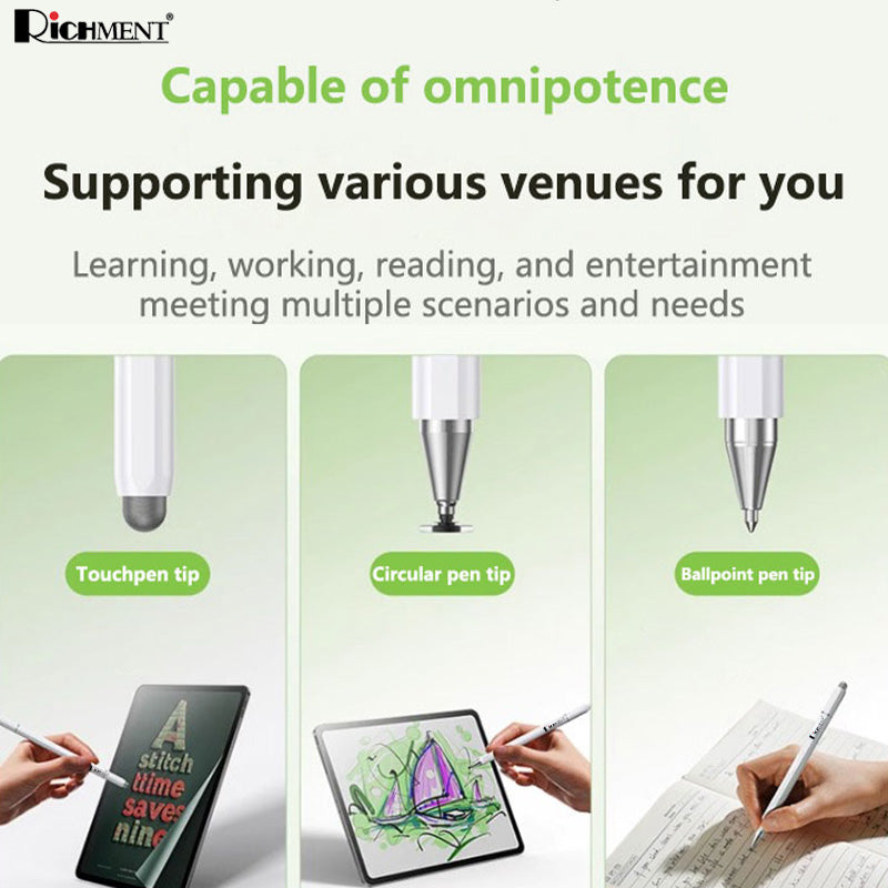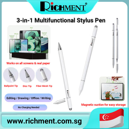 【✅SG Brand🔥】RICHMENT 3 in 1 Universal Stylus Pen with Magnetic Suction for iPad iPhone Android Tablets Phones and Real Paper, Touch Tip, Disc Tip, Ballpoint Pen, High Sensitivity for Writing, Drawing, Gaming, Reading and Study