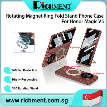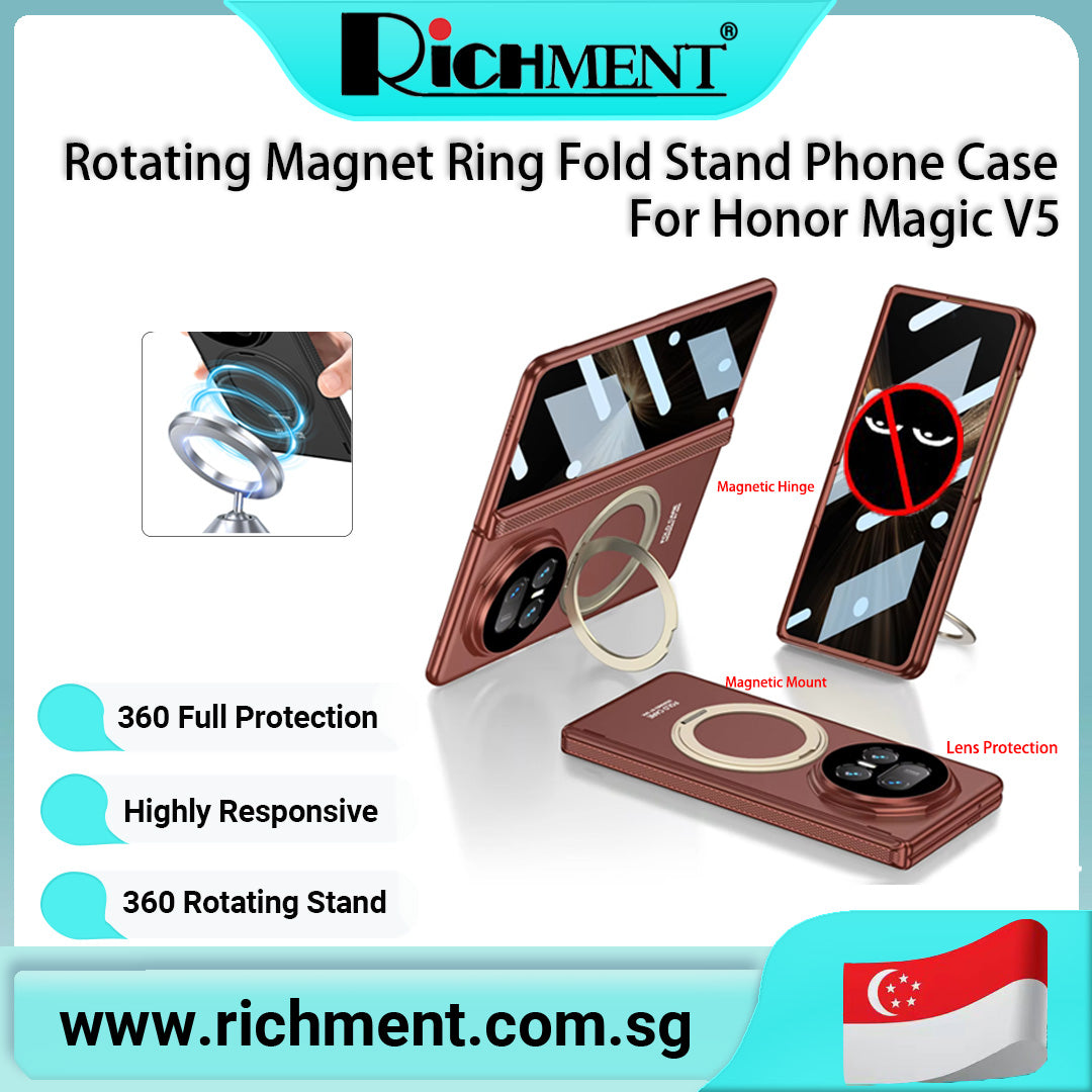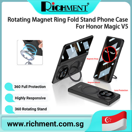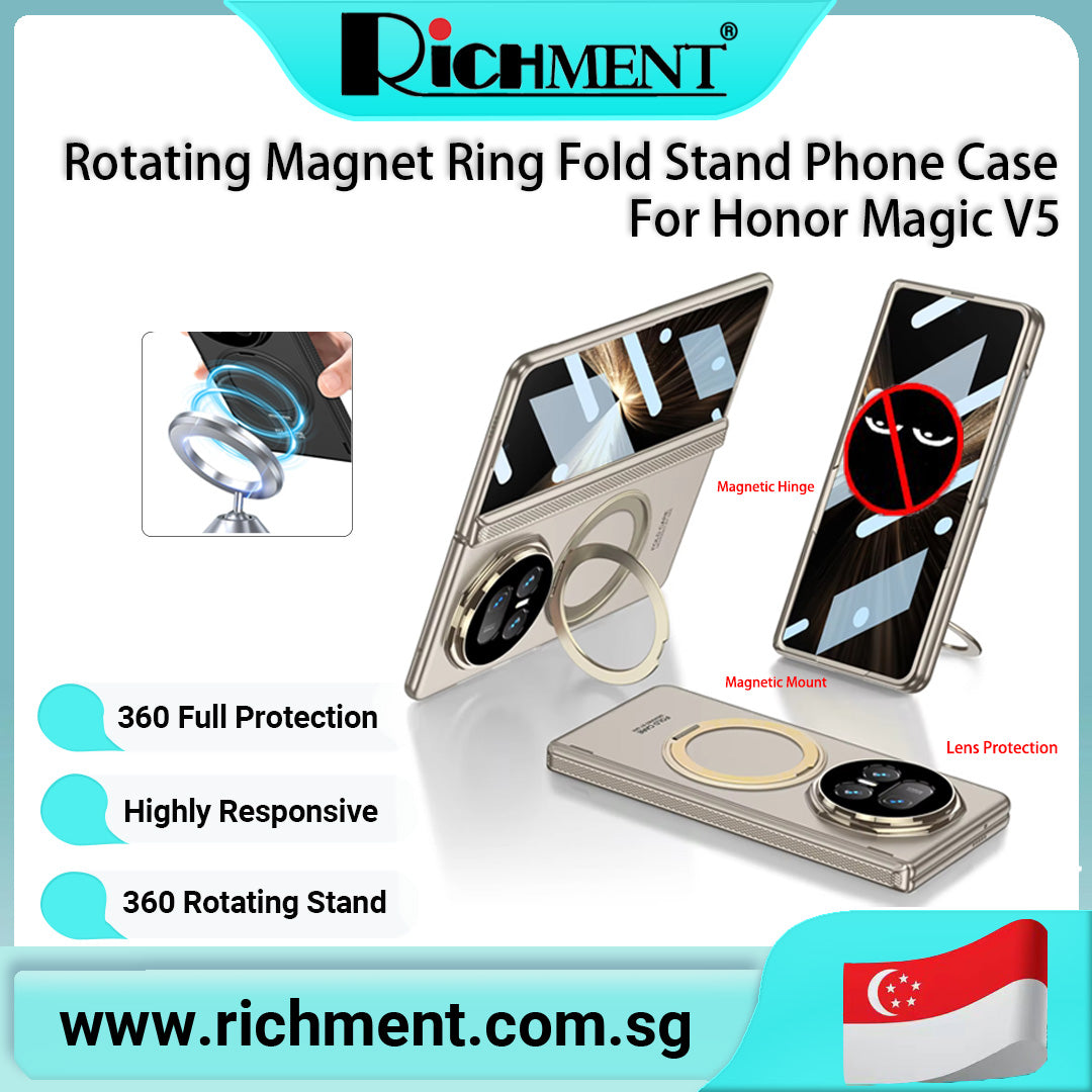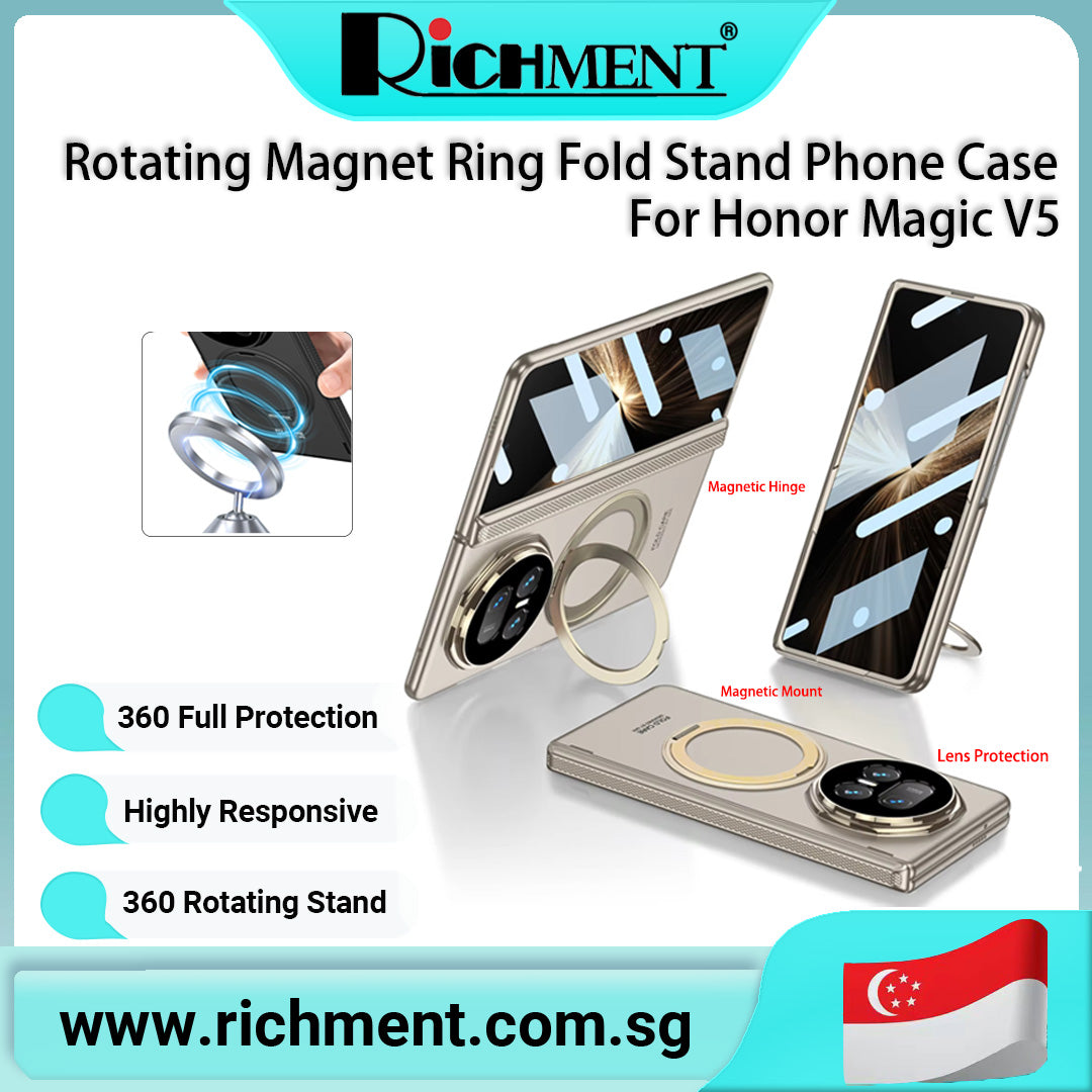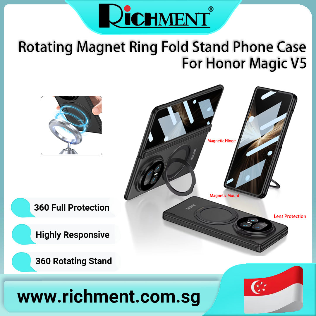 【✅SG Brand🔥】RICHMENT 360° Hinge Protection Case for Magic V5 | Magnetic 360° Rotating Stand Phone Case | Full Cover Shockproof Foldable Case with Strong Magnetic Ring Stand Finger Holder Desk Stand