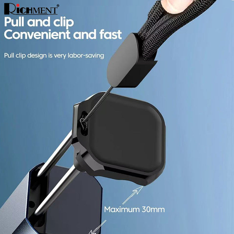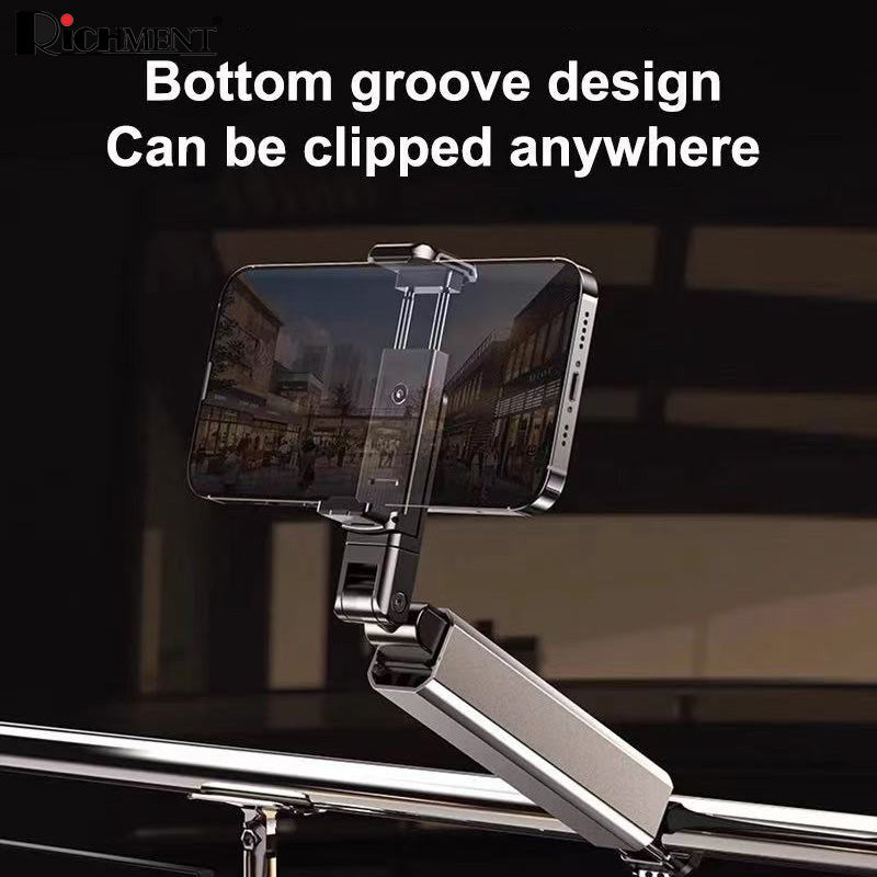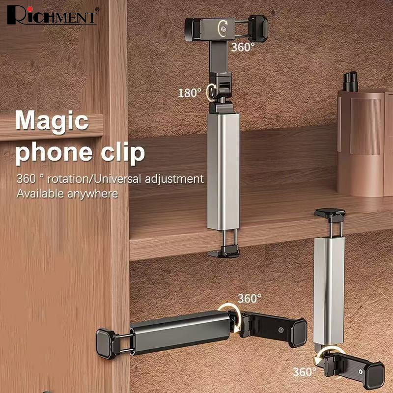 【✅SG Brand🔥】RICHMENT 360° Rotating Adjustable Phone Clip Holder, Foldable Aluminum Alloy Clamp Mount with Multi-Angle Rotation, Bottom Groove Design, Universal Fit for iPhone & Android, Portable Travel Stand for Desk, Car, Shelf, or Bed Use