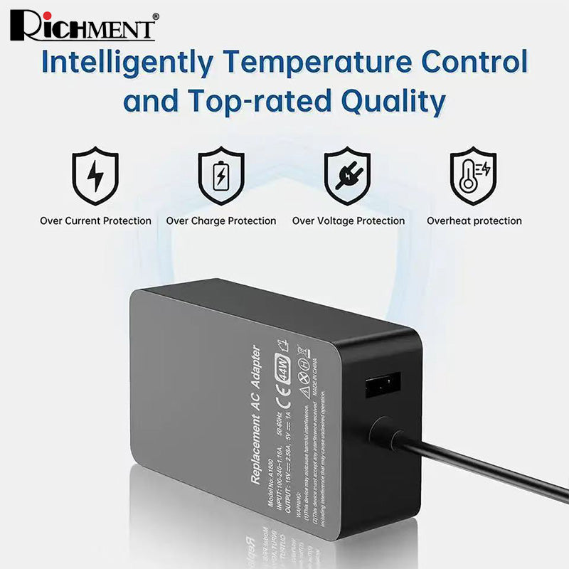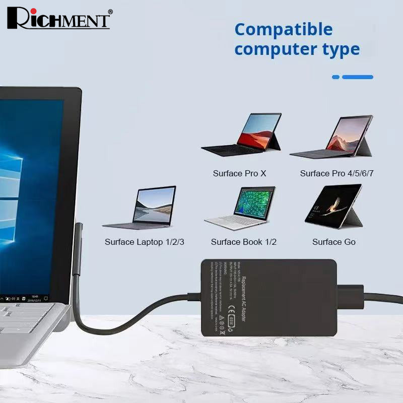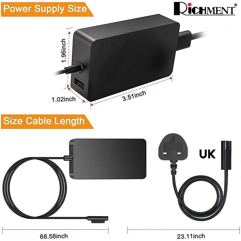 【✅SG Brand🔥】RICHMENT 65W Surface Pro Charger Compatible with Microsoft Surface Pro 10, 9, 8, 7+, 6, 5, 4, 3, X, Windows Surface Laptop 6, 5, 4, 3, 2, 1, Surface Go Tablet, Surface Book 3, 2, 1, 44W, 36W 65W