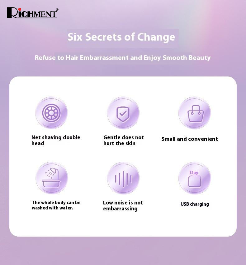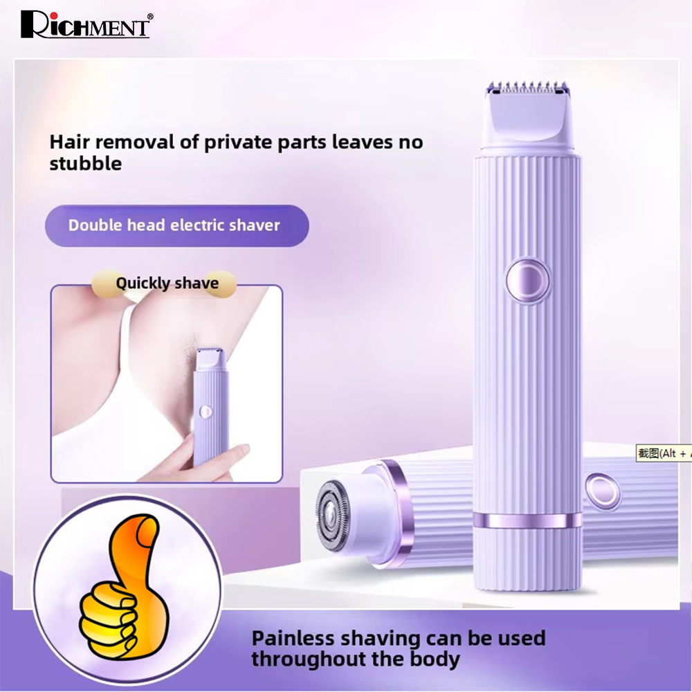 - This 2 in 1 Women electric shaver features a dual head design, eliminating the need for frequent head changes. The precision trimming head is used for quick large-area hair removal, while the round shaver head provides a close and smooth finish. Our double headed electric shaver is safe and skin friendly, while ensuring a clean and residue free shave