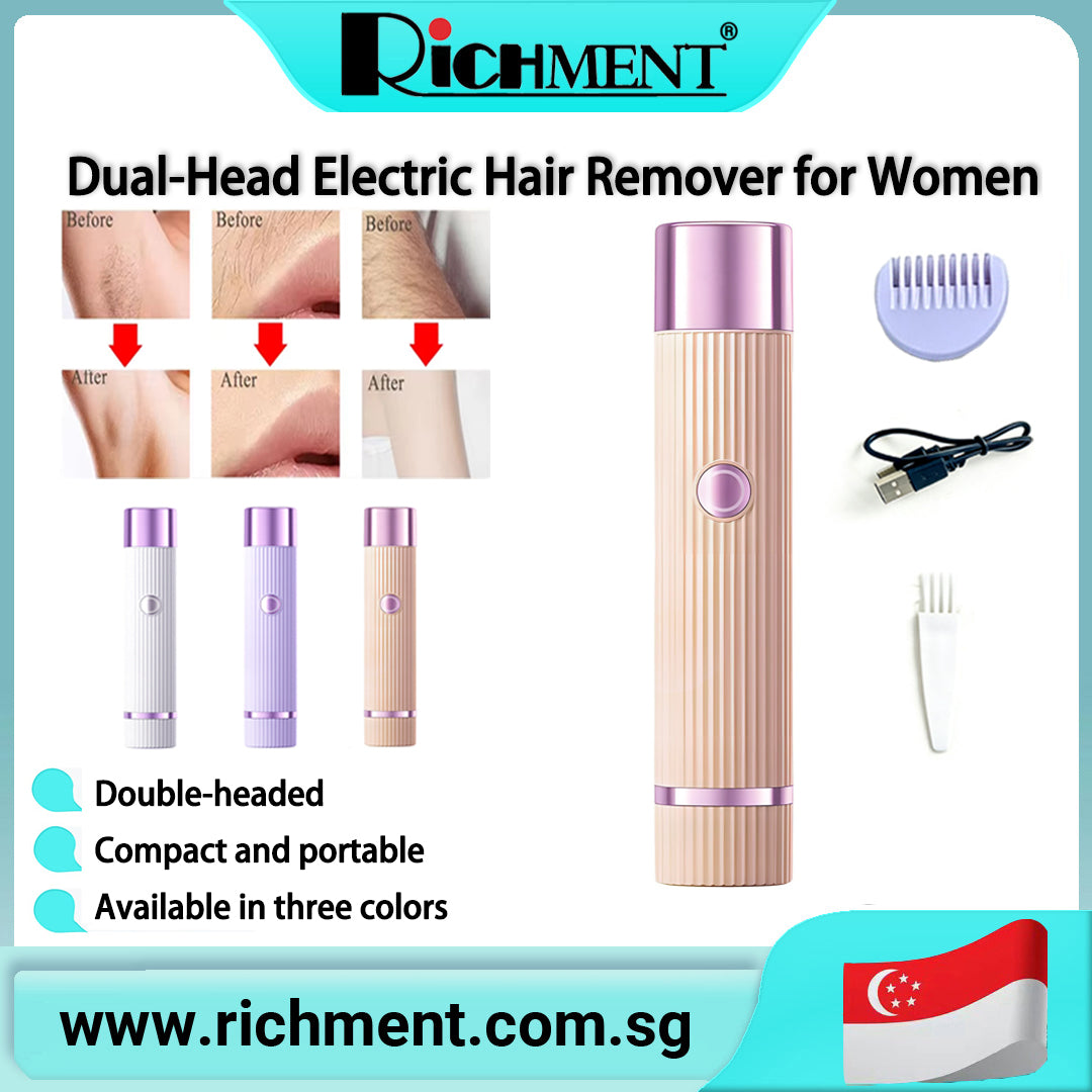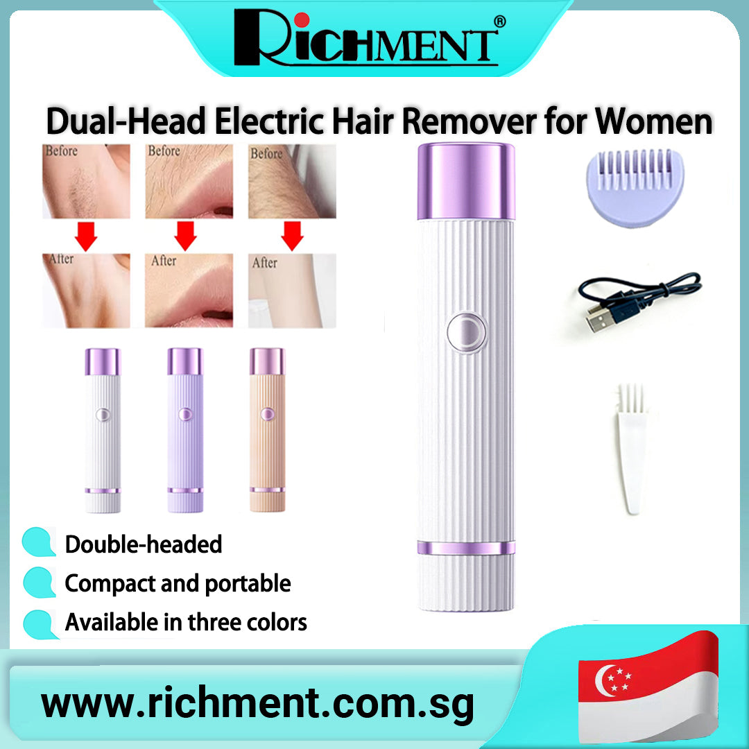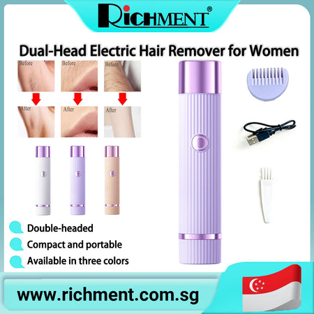 【✅SG Brand🔥】RICHMENT Bikini Trimmer for Women 2 in 1, Dual Head Womens Electric Shaver, Electric Razors for Pubic Hair, IPX7 Waterproof Rechargeable Facial Hair Removal for Shaving Underarm Leg Arm Body Face