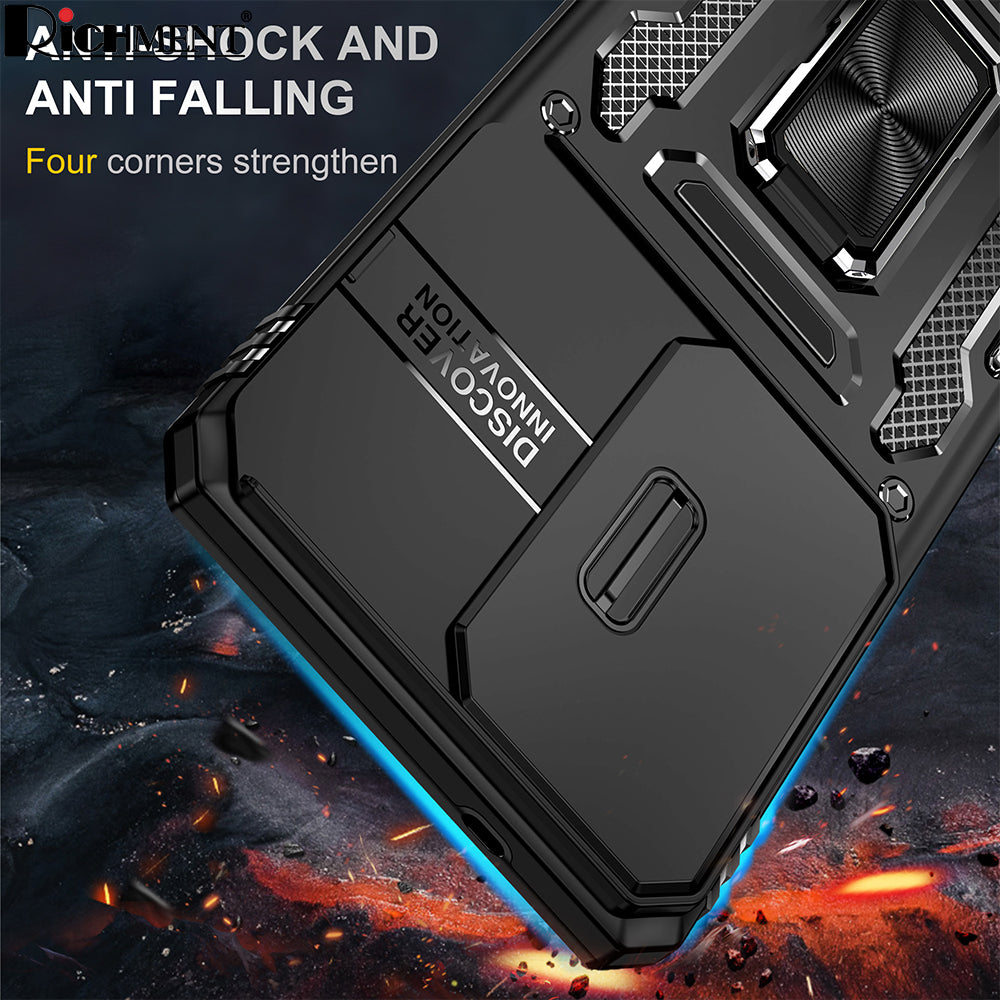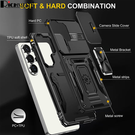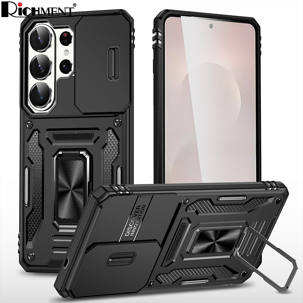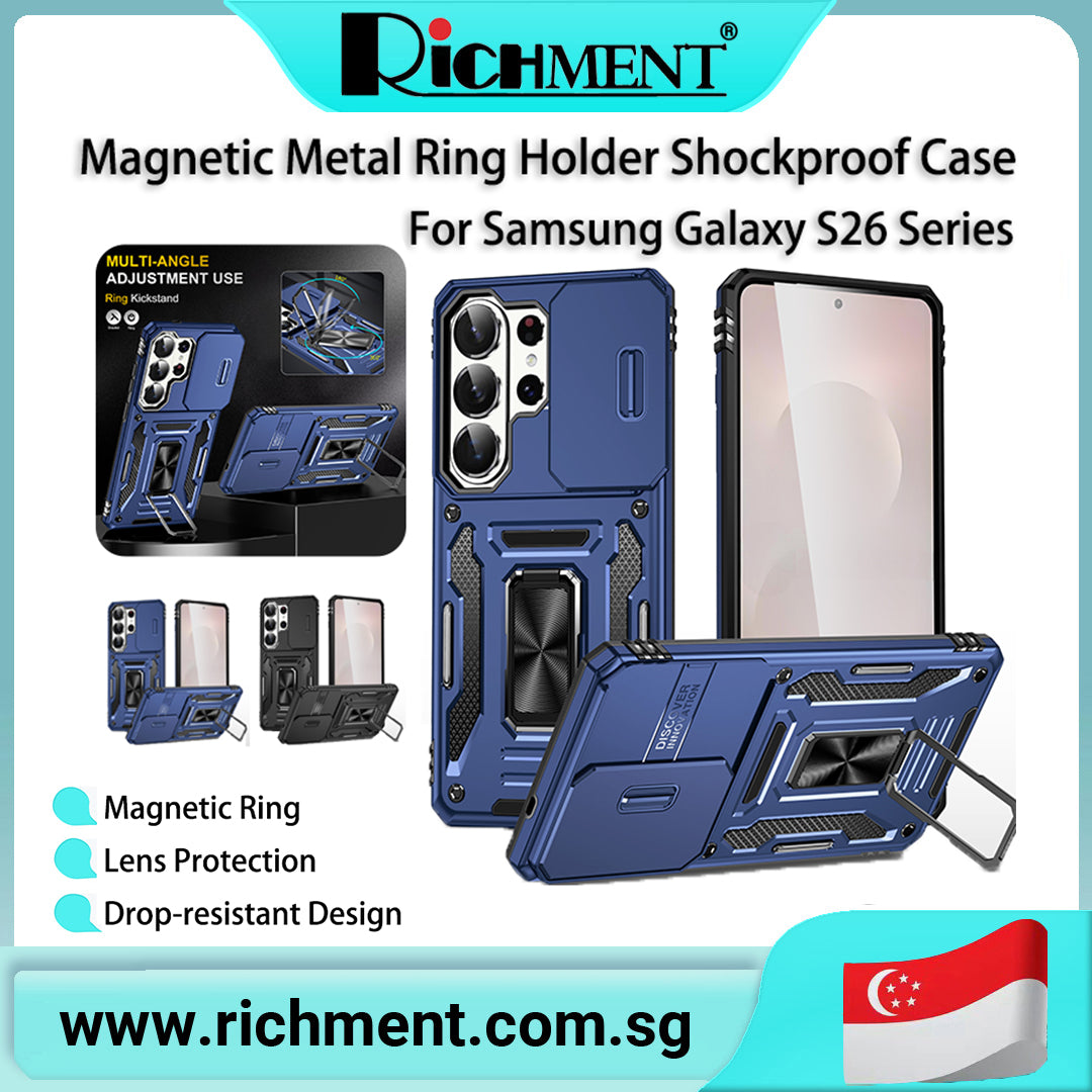 【✅SG Brand🔥】RICHMENT Built in Slide Camera Lens Cover+Screen Protector+Finger Ring Holder Kickstand,Heavy Duty Shockproof Full Body Phone Cover for Samsung galaxy S26