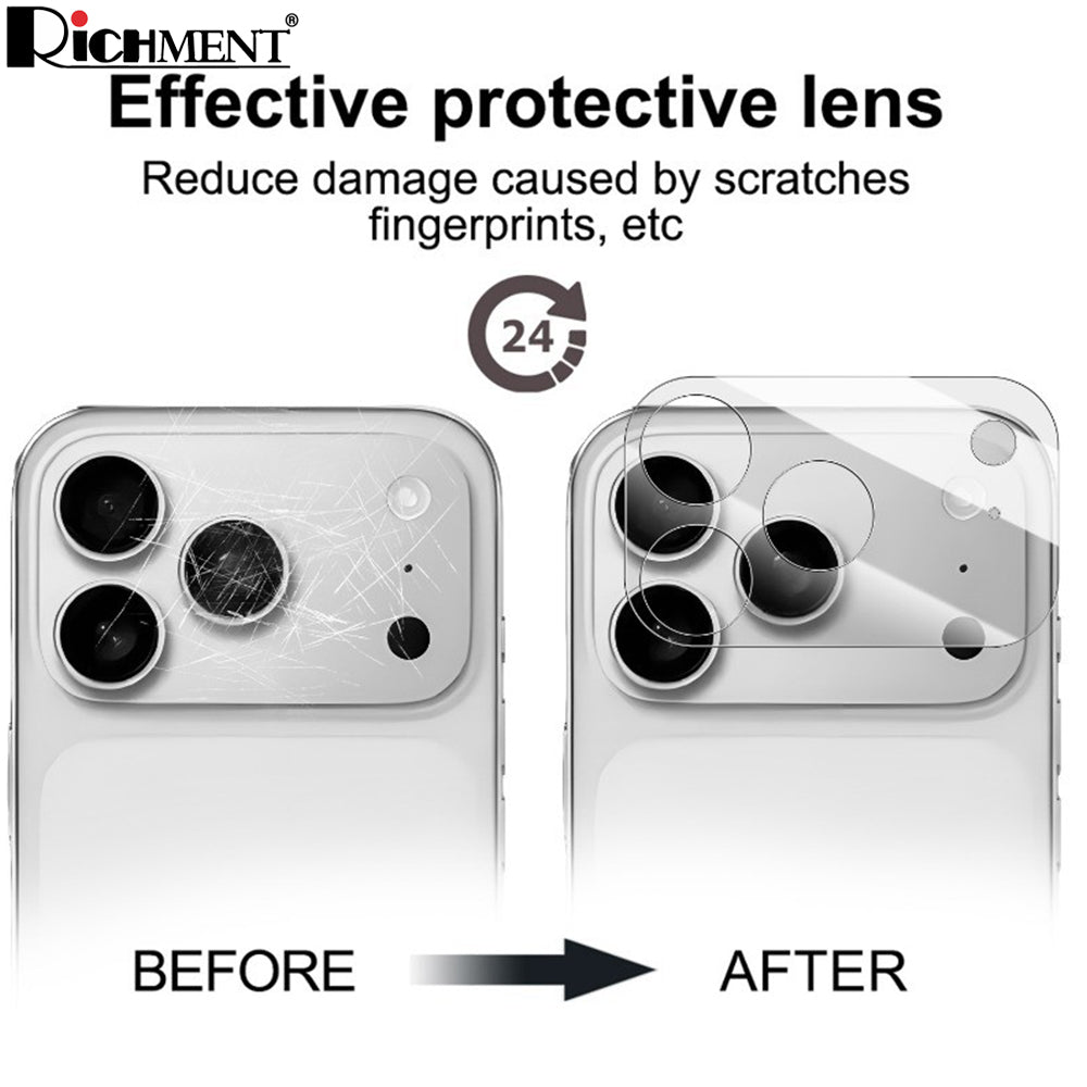 【✅SG Brand🔥】RICHMENT Camera Lens Protector, HD Clear Tempered Glass Camera Accessories, 9H Hardness Anti-Scratch Screen Cover, Case Friendly [Does Not Affect Night Shots for iPhone 17 Series
