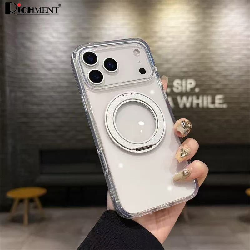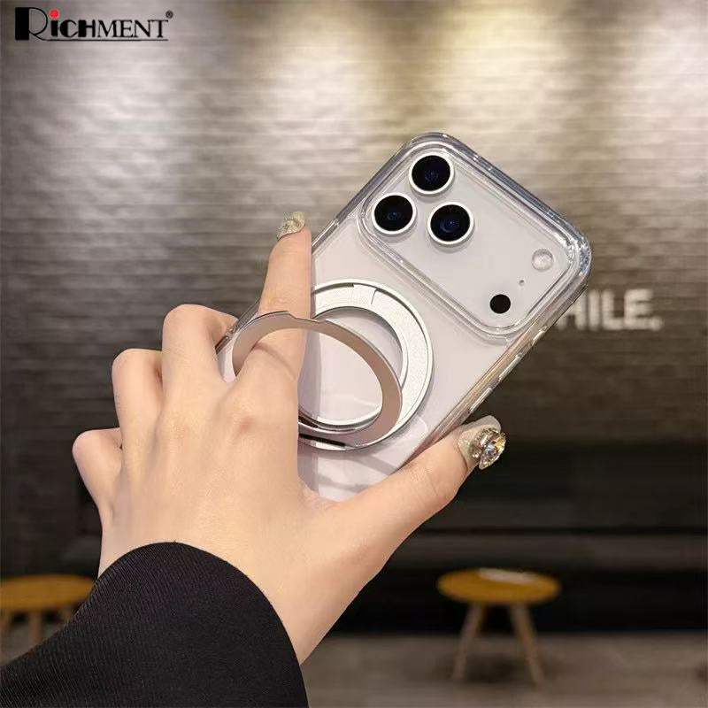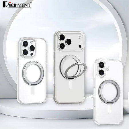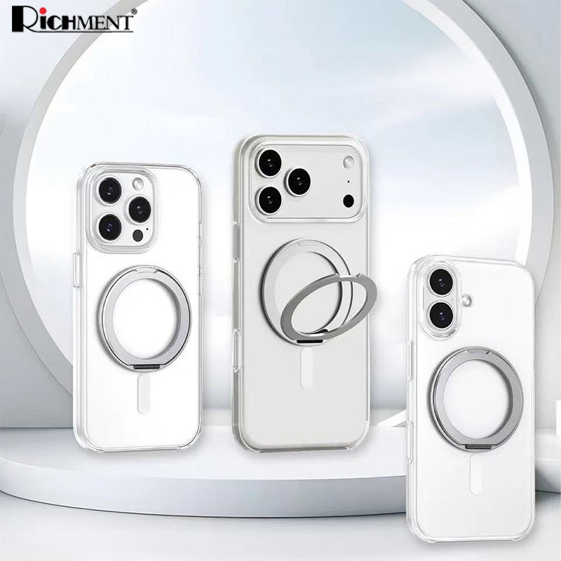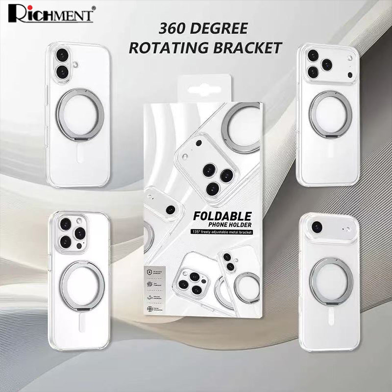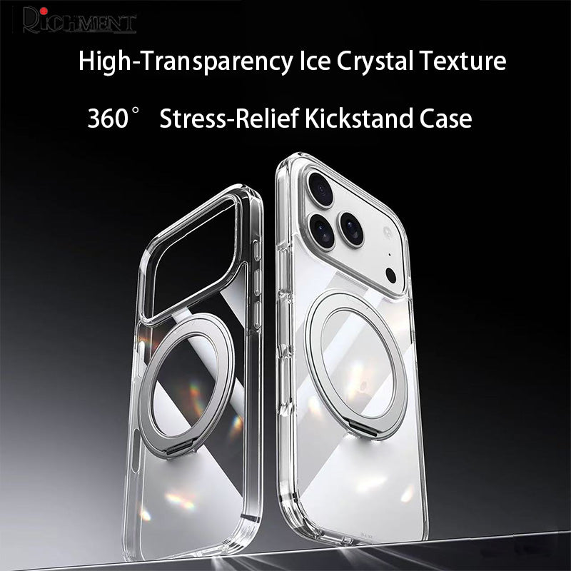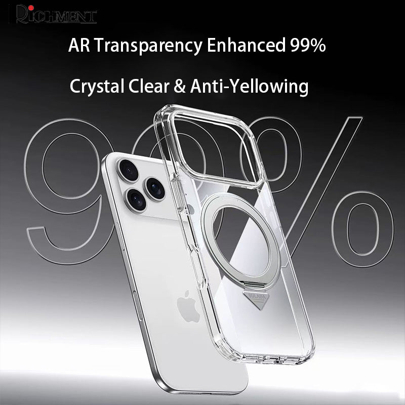 【✅SG Brand🔥】RICHMENT Clear Magnetic Ring Kickstand Case for iPhone 17 / 17 Air / 17 Pro / 17 Pro Max, Strong Magnetic Adsorption with 38pcs N52SH Magnets, Support Wireless Charging, 360° Rotating Stand, Ultra-Clear Anti-Yellowing TPU Protective Cover