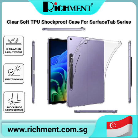 【✅SG Brand🔥】RICHMENT Clear Soft TPU Shockproof Airbag Case for Microsoft Surface Pro 12, 12" / Pro 8,9,10,11, 13" / Pro 4,5,6,7, 12.3", Soft TPU Back Cover, Thin Cover, Airbag Protection, Case Transparent