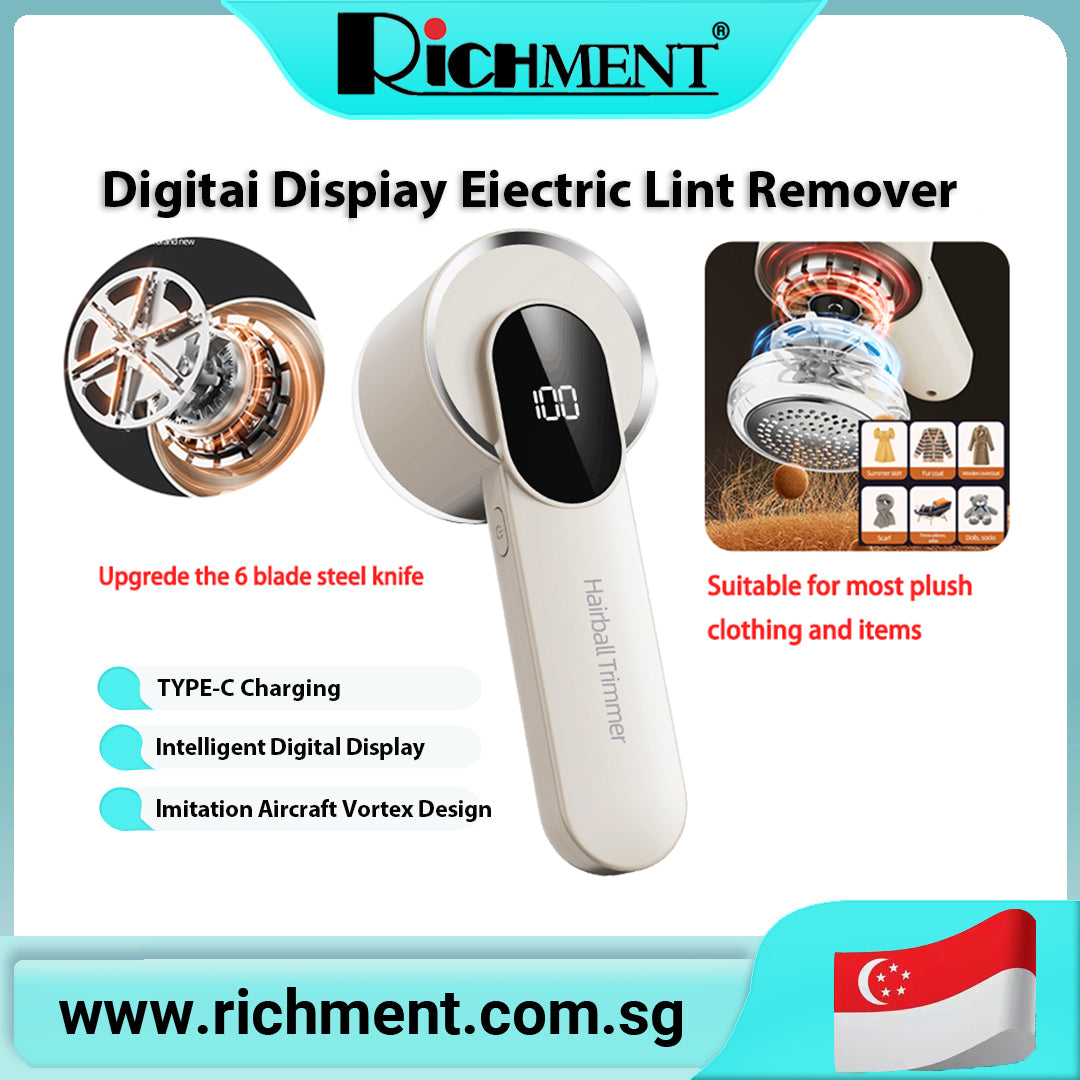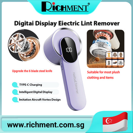ใโ SG Brand๐ฅใRICHMENT Cold-Weather Rechargeable Fabric Shaver Fuzz Remover with Digital Display Sweater Shaver with Six-Blade System and Safety Lock Three-Speed Lint Remover for Clothing, Furniture, Sofas, and Blankets