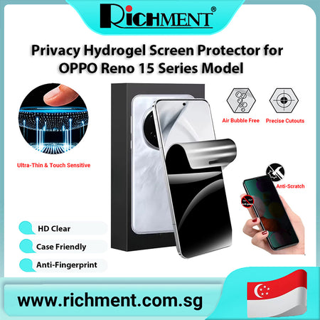 【✅SG Brand🔥】RICHMENT Full Coverage Anti-Spy Hydrogel Film Soft TPU Screen Protector for OPPO Reno 15/15C/15 Pro/15Pro Max with Privacy Hydrogel Film, Nano Self-Healing Anti-Fingerprint Waterproof Bubble-Free Case Friendly