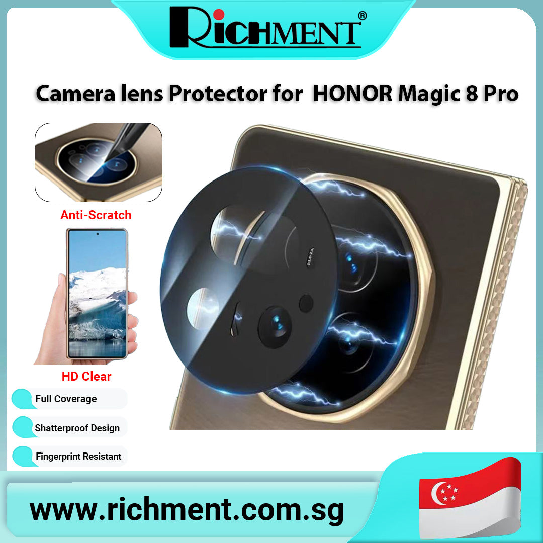 【✅SG Brand🔥】RICHMENT HD Camera Lens Protector– Full Coverage Tempered Glass, Anti-Scratch, Shatterproof, Smudge-Resistant, Ultra Clear, Easy Installation for Honor Magic 8/8pro