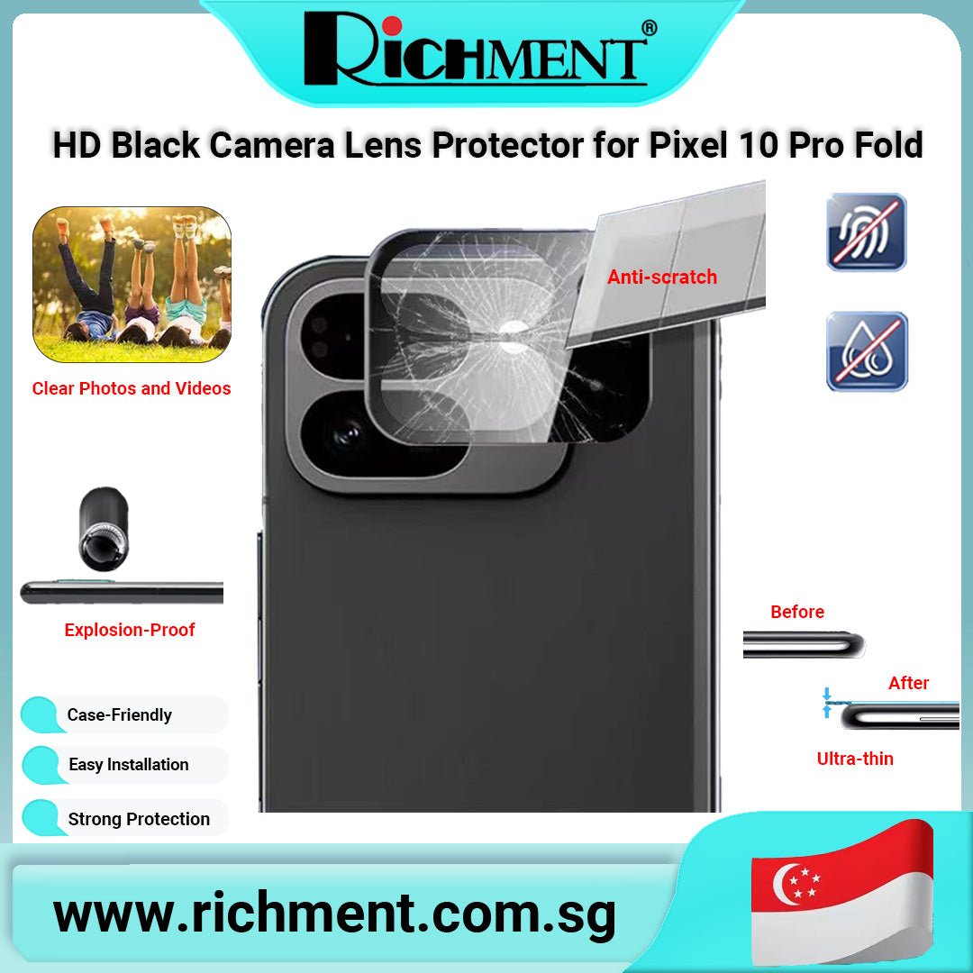 【✅SG Brand🔥】RICHMENT HD Clear & Black Camera Lens Protector for Google Pixel 10 Pro Fold / Pixel 9 Pro Fold – 9H Tempered Glass, Anti-Scratch, Explosion-Proof, Ultra-Thin Slim Fit, Case Friendly, Easy Installation, Protects Against Drops