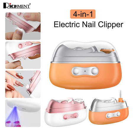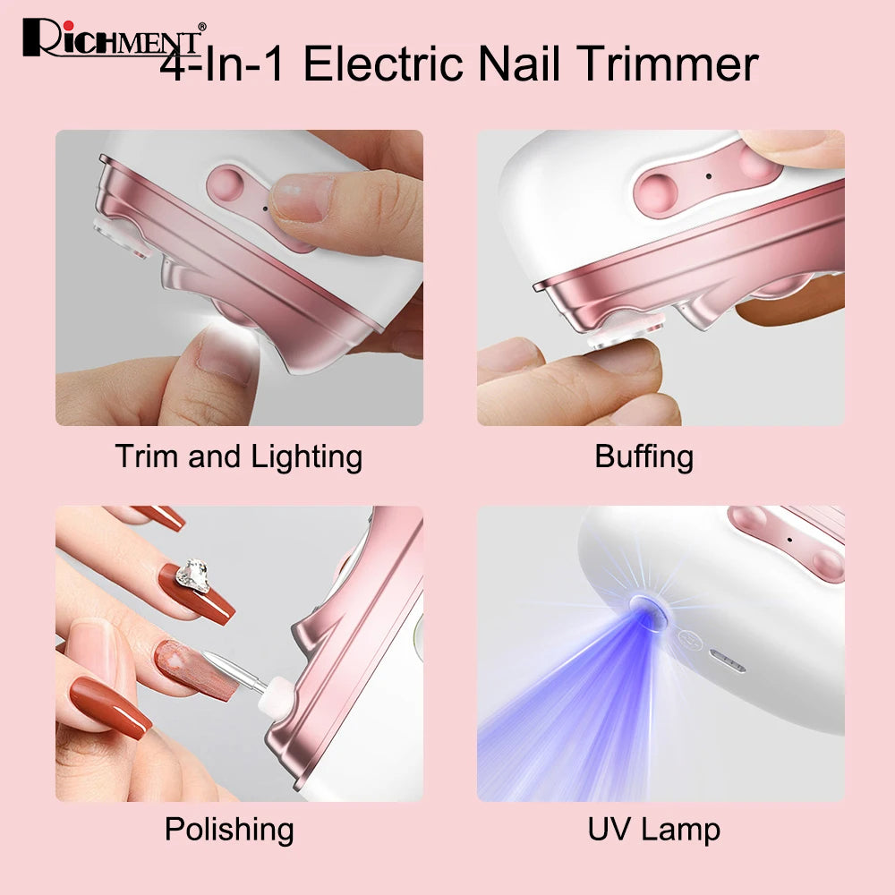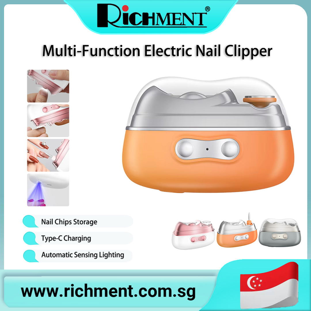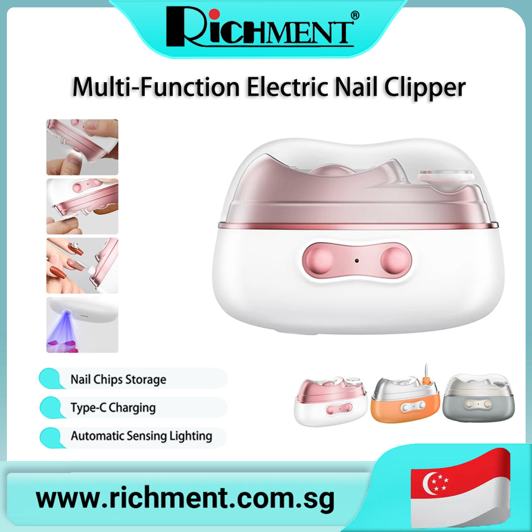 【✅SG Brand🔥】RICHMENT M8 4-in-1 Electric Nail Clipper: Trimming, Buffing, Polishing and Drying Toe clippers + Nail file + UV nail file + UV curing lamp for Baby Adults Seniors -Heavy DutyManicure Polisher with Safety LEDfor Trimming & Polishing Nails