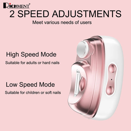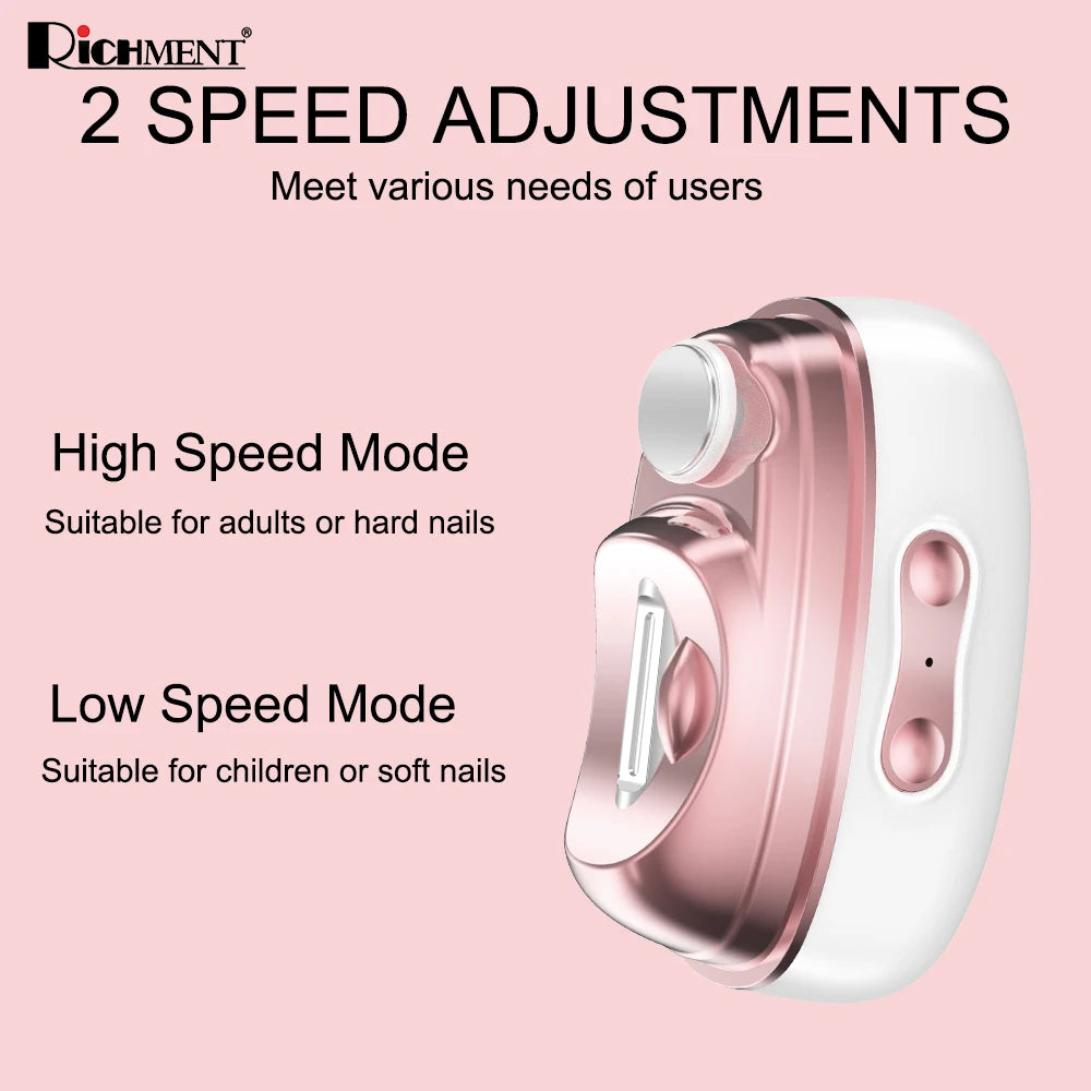 - Crafted with a high-quality SUS420 steel blade, this electric nail trimmer uses a gentle grinding mechanism to shape nails smoothly and precisely. The innovative design reduces the risk of rough edges or nail deformation, giving you salon-quality results at home. Its curved opening and raised sides offer added protection, keeping the recessed blade safely away from fingers during use.