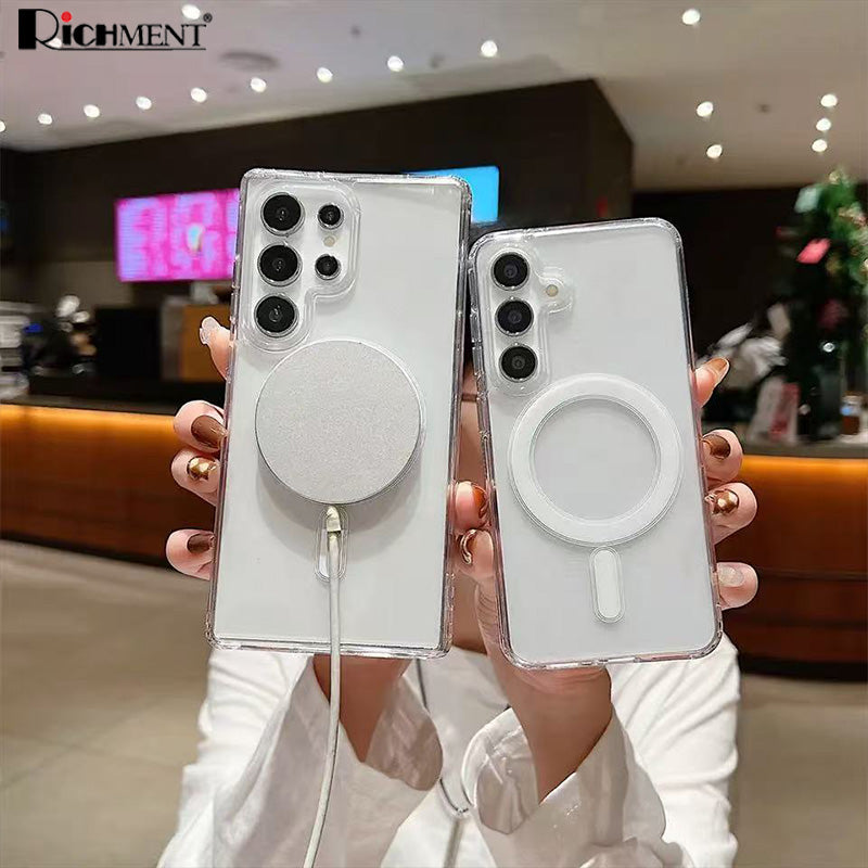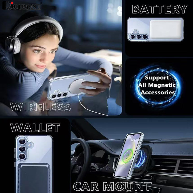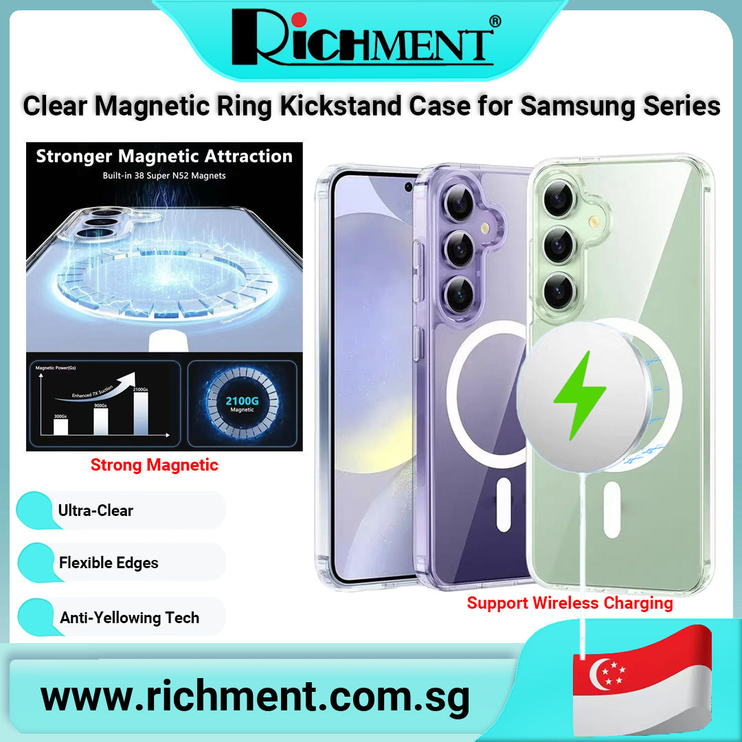 【✅SG Brand🔥】RICHMENT Magnetic Clear Phone Case For Samsung Galaxy S25 Ultra / S25 Plus / S25 5G / S25 FE / S25edge / S24 Ultra / S24 Plus / S24 5G– Anti-Yellow TPU, Built-in N52 Strong Magnets, Drop Protection, Wireless Charging & Car Mount Compatible
