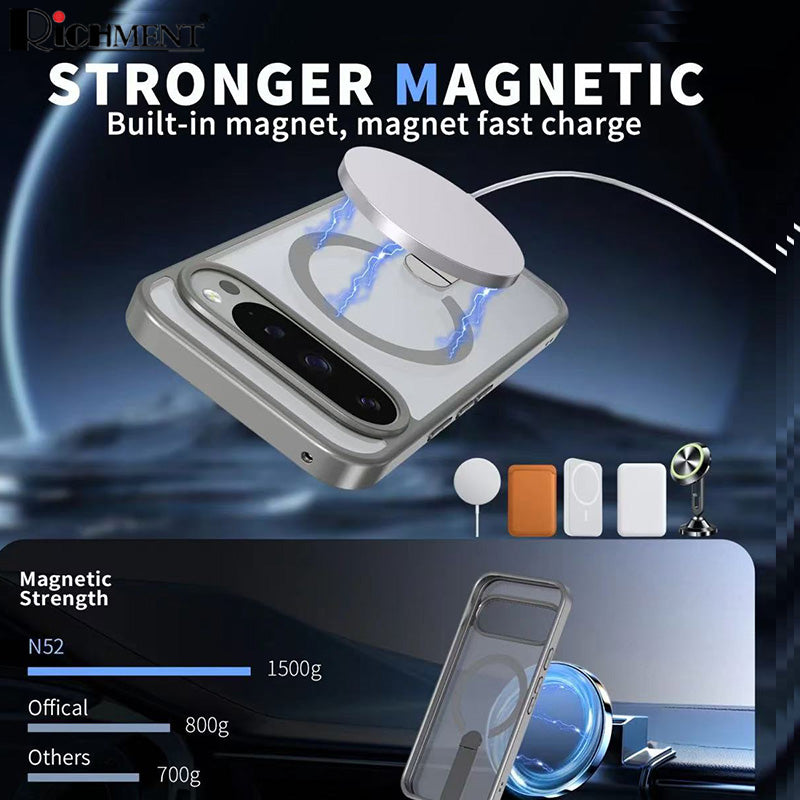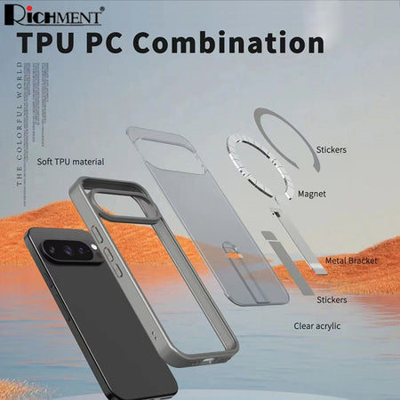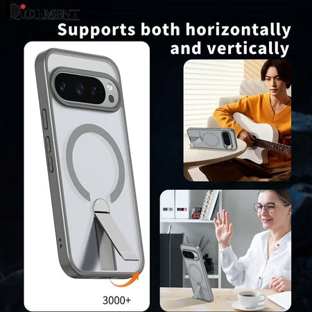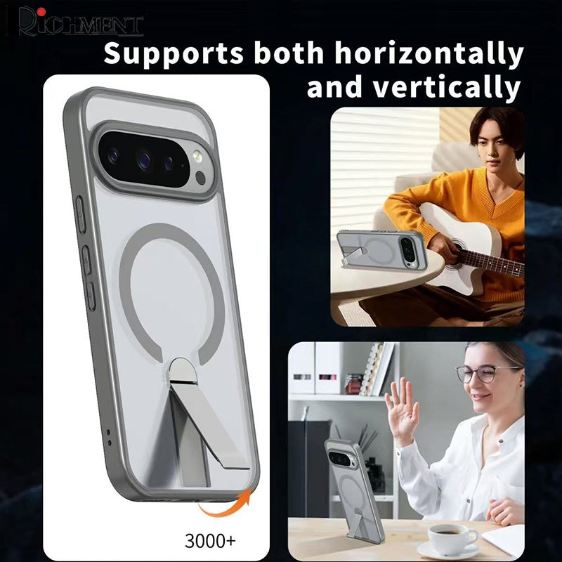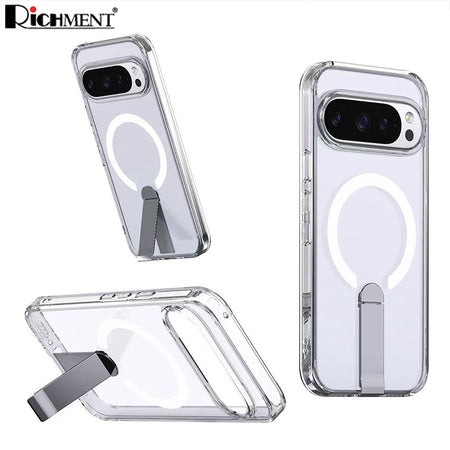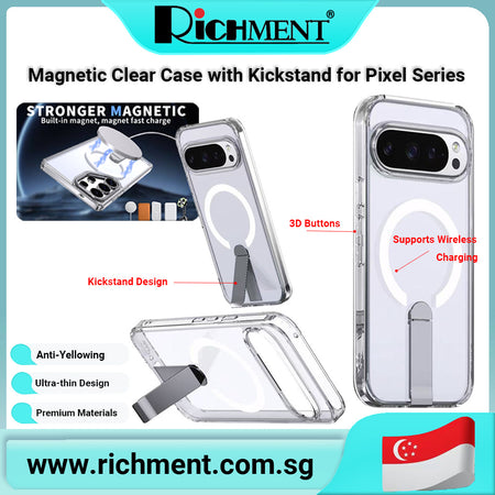 【✅SG Brand🔥】RICHMENT Magnetic Clear Phone Case with Kickstand for Google Pixel 9 Pro / Pixel 10 Pro – Shockproof TPU+PC Hybrid Slim Cover, Strong Magnetic Wireless Charging Compatible, Military Grade Drop Protection, Raised Edge Camera Guard