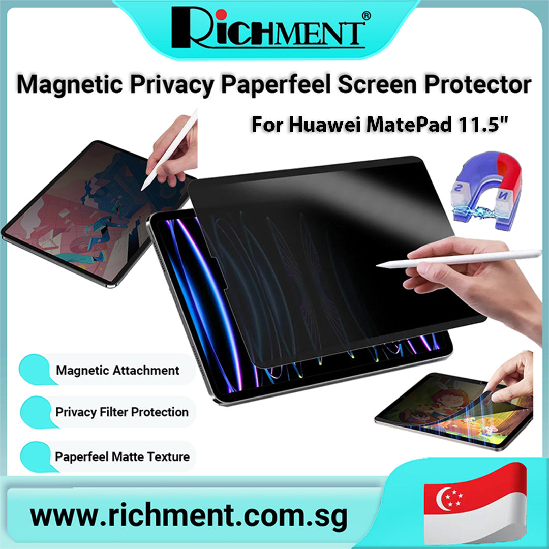 【✅SG Brand🔥】RICHMENT Magnetic Privacy Screen Protector for Huawei MatePad Mini 8.8‘’ – Paperfeel Matte Finish, Anti-Glare, Eye Protection, Bubble-Free Installation
