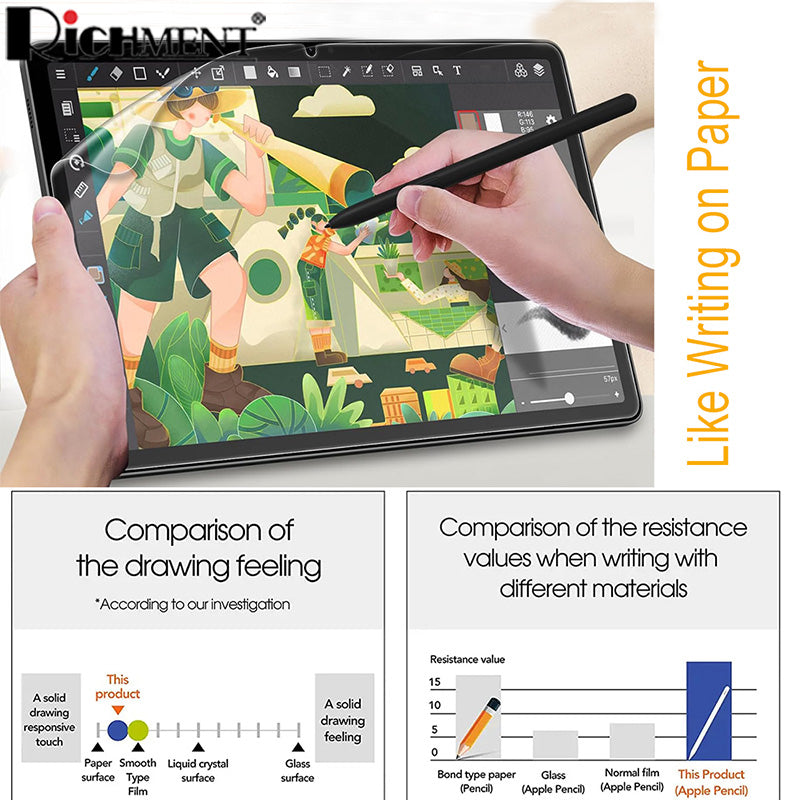 - Offers natural resistance and friction for Pencil-style styluses. Simulates sketchbook paper for a better writing & drawing experience.