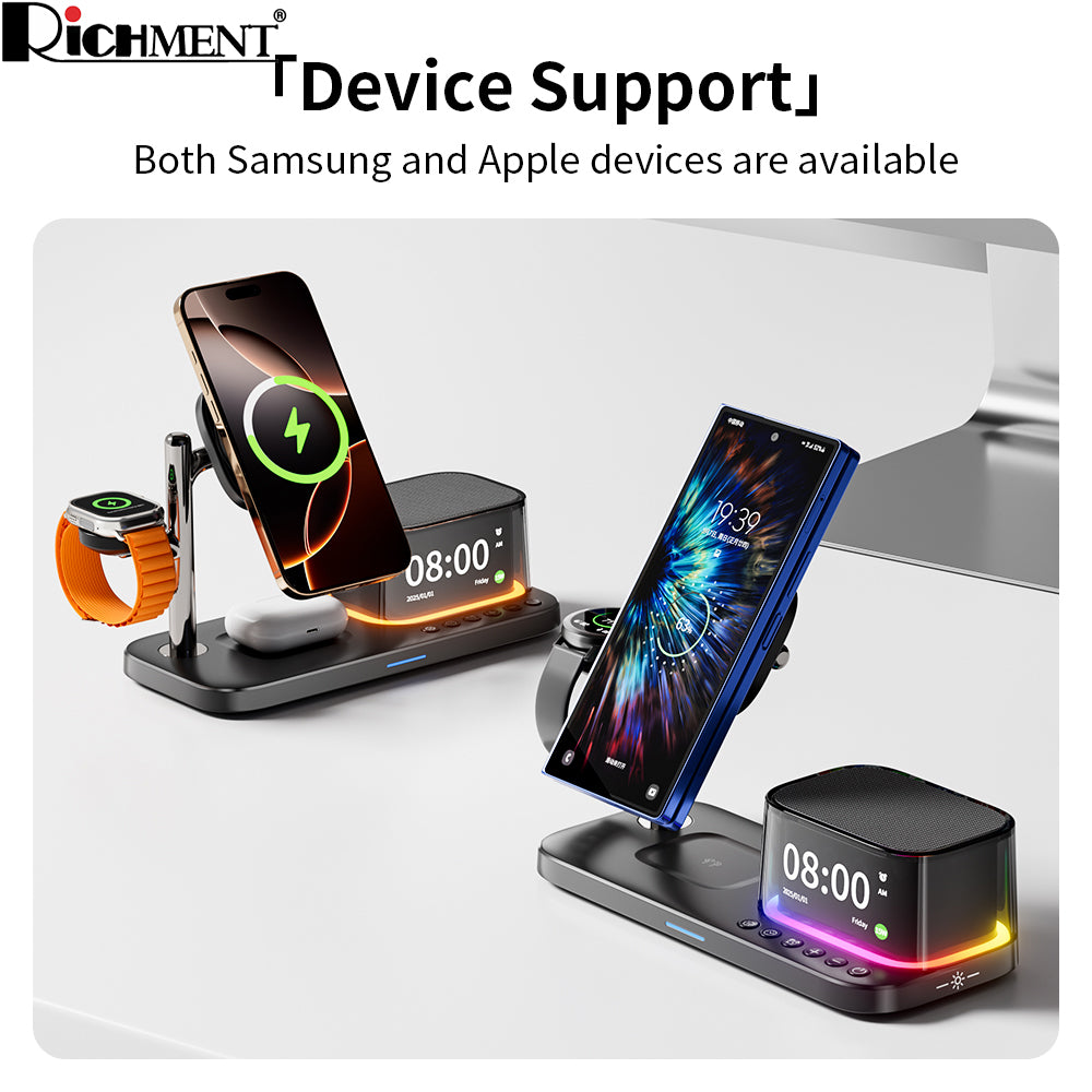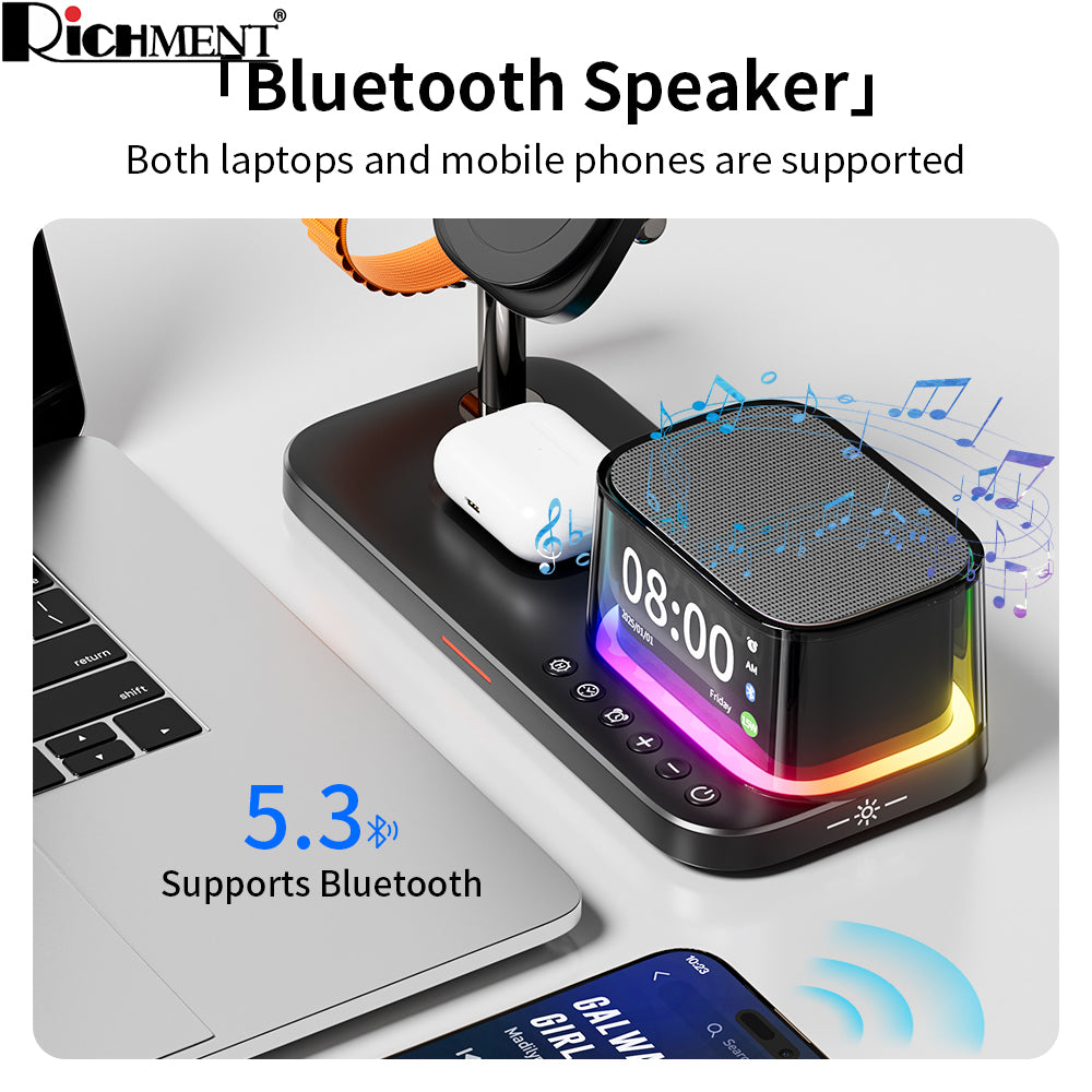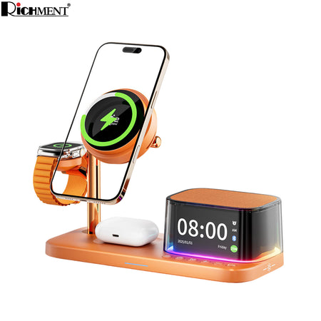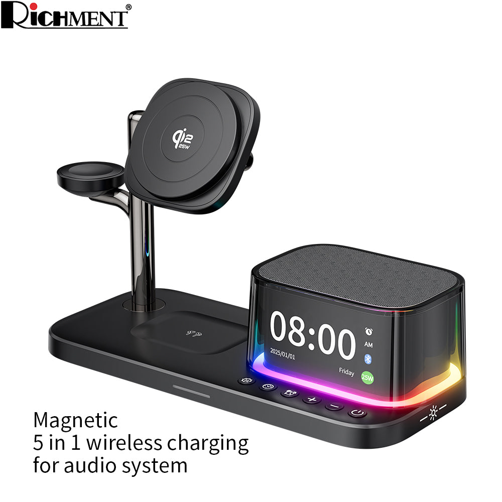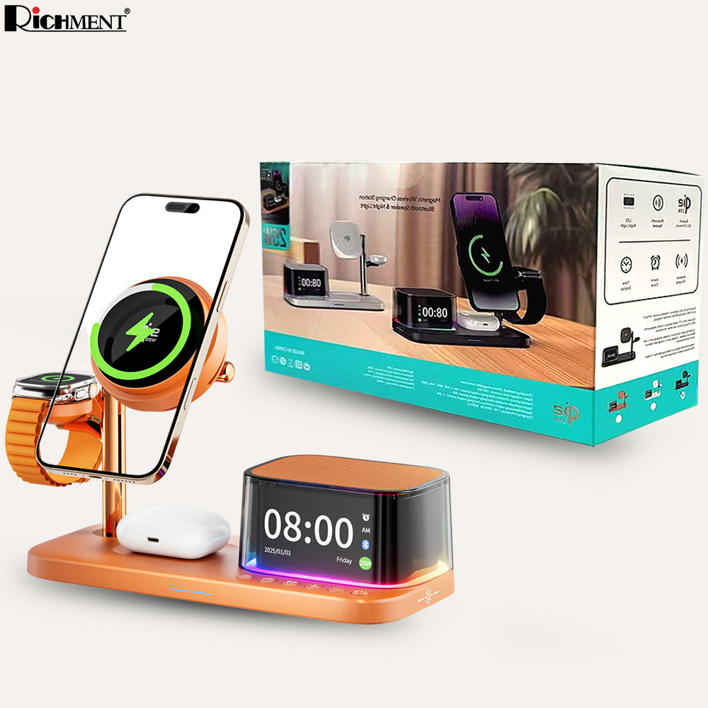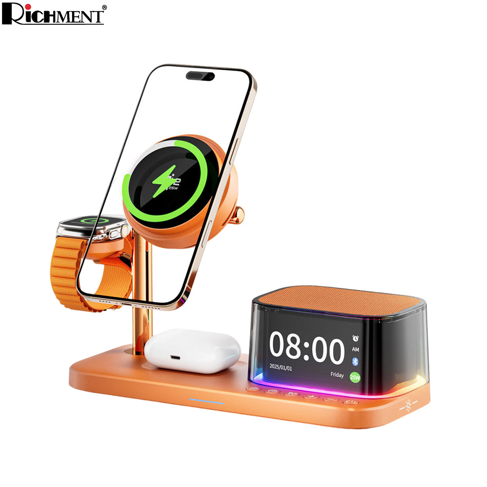 【✅SG Brand🔥】RICHMENT Portable Multi functional Wireless Charging Stand 5-in-1 Wireless Charger Qi2.2 Magnetic 25W with Bluetooth Speaker Golf, Beach, Homeware, Travel, Gift Ideas