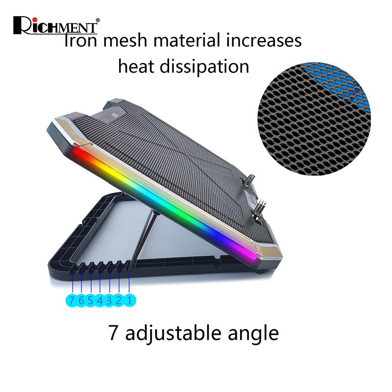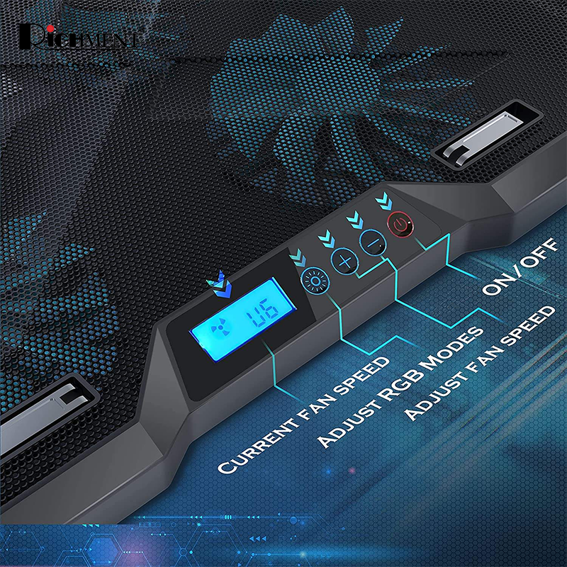 - 【 RGB Ambient Lighting + LCD Display 】Unique surround RGB lighting. This notebook cooler has LED dazzling lights, with multiple RGB colors and 10 lighting effect modes. The LCD screen allows you to operate more conveniently.