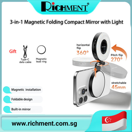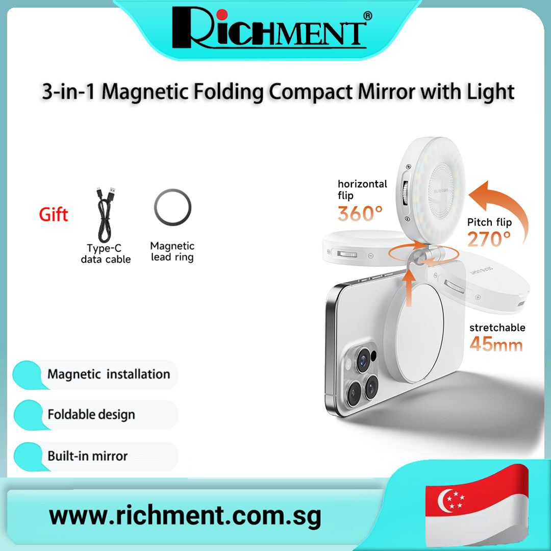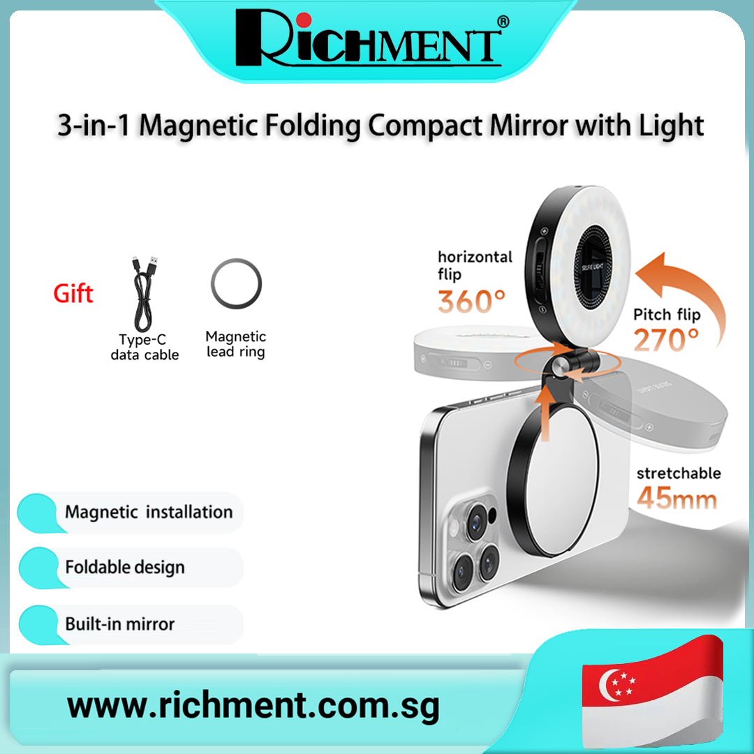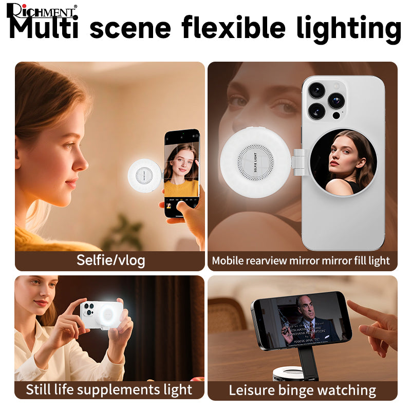 【✅SG Brand🔥】RICHMENT SELFIE LIGHT Portable MINI Magnetic 360° Fill Light ideal for video filming and travel, compatible with iPhone and most smartphones.