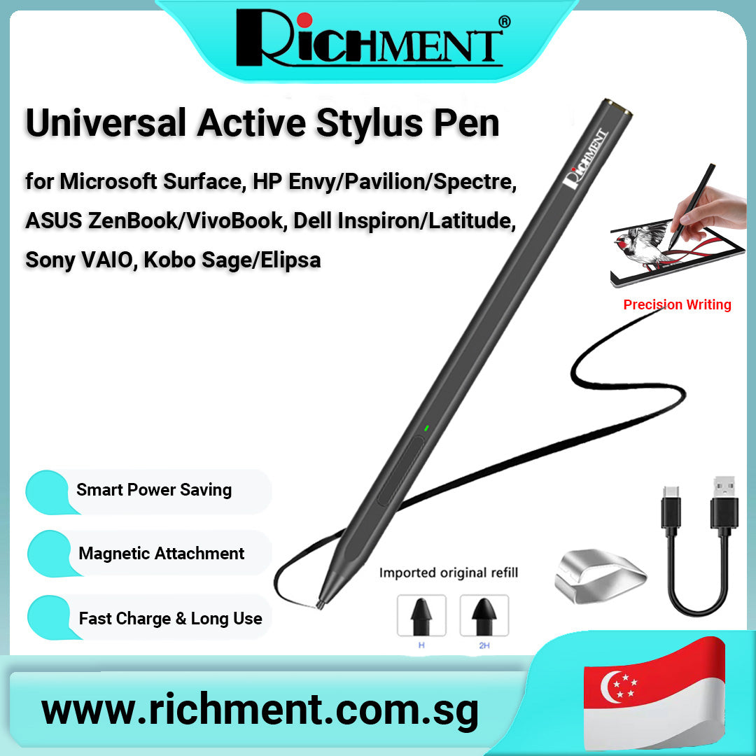 【✅SG Brand🔥】RICHMENT Stylus Pen for for Microsoft Surface, HP Envy/Pavilion/Spectre, ASUS ZenBook/VivoBook, Dell Inspiron/Latitude, Sony VAIO, Kobo Sage/Elipsa, 4096 Pressure Sensitivity, Tilt Function, Magnetic Attach
