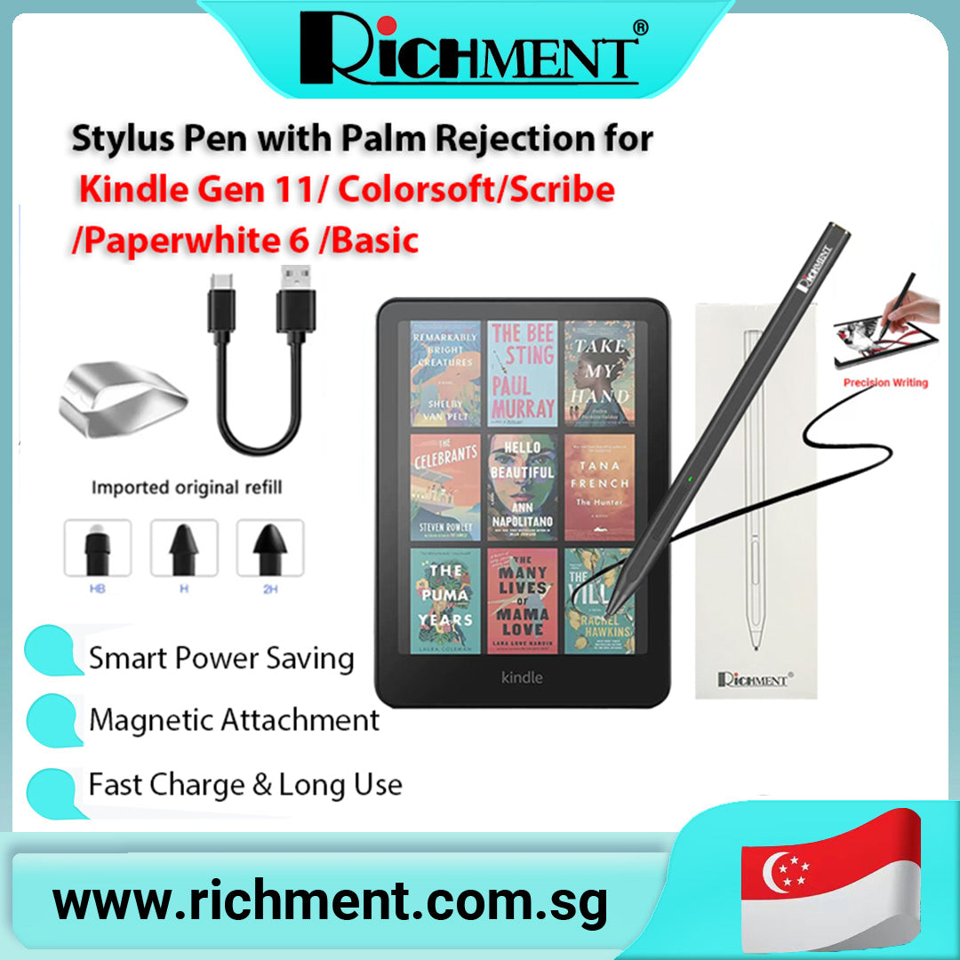 【✅SG Brand🔥】RICHMENT Active Stylus Pen for Kindle E-Reader, Palm Rejection, 4096 Pressure Sensitivity, Type-C Fast Charging, Magnetic Attachment