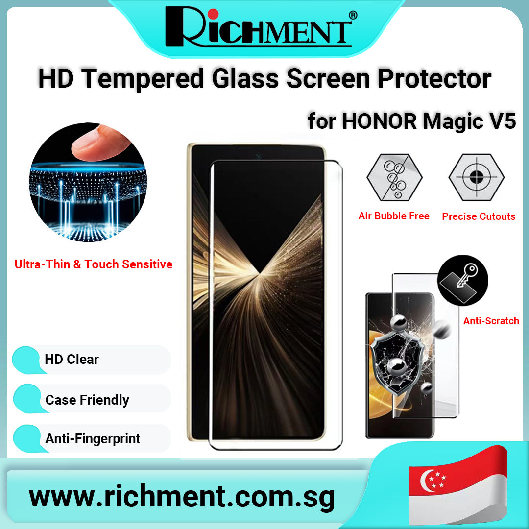 【✅SG Brand🔥】RICHMENT Tempered Glass Screen Protector for HONOR Magic V5 – 9H Hardness, HD Clear, Anti-Fingerprint, Full Coverage, Anti-Scratch, Case Friendly, Bubble-Free