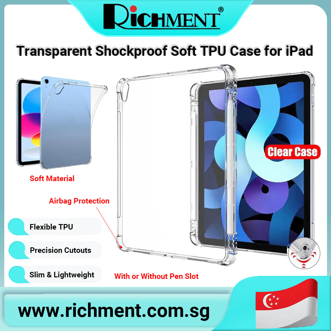 【✅SG Brand🔥】RICHMENT Transparent Soft TPU Tablet Case with Airbag Protection – Shockproof Slim Cover, Raised Edges, Precision Cutouts, Anti-Scratch Clear Protective Case with Flexible Soft Silicone Design for Tablets