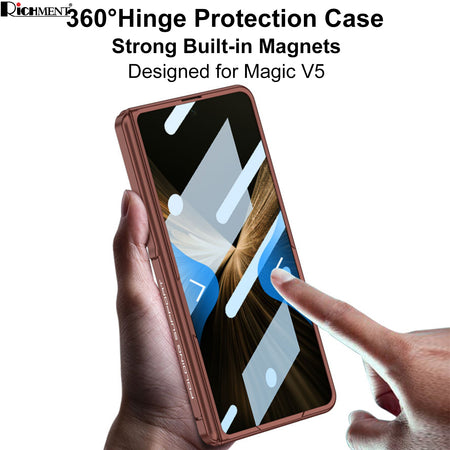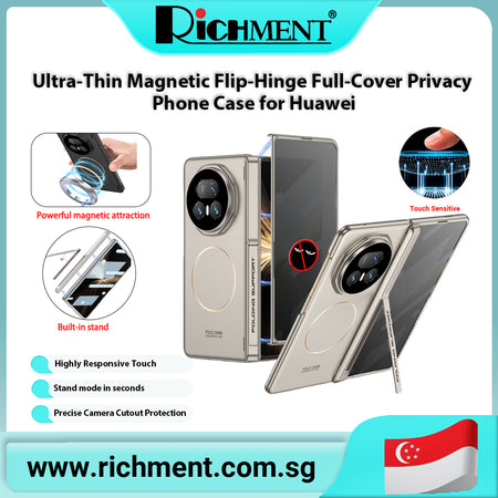 【✅SG Brand🔥】RICHMENT Ultra-Thin Magnetic Anti-Peep Screen with HD and Drop ProtectionFlip-Hinge Full-Cover Privacy Phone Case for Huawei Honor Magic V5