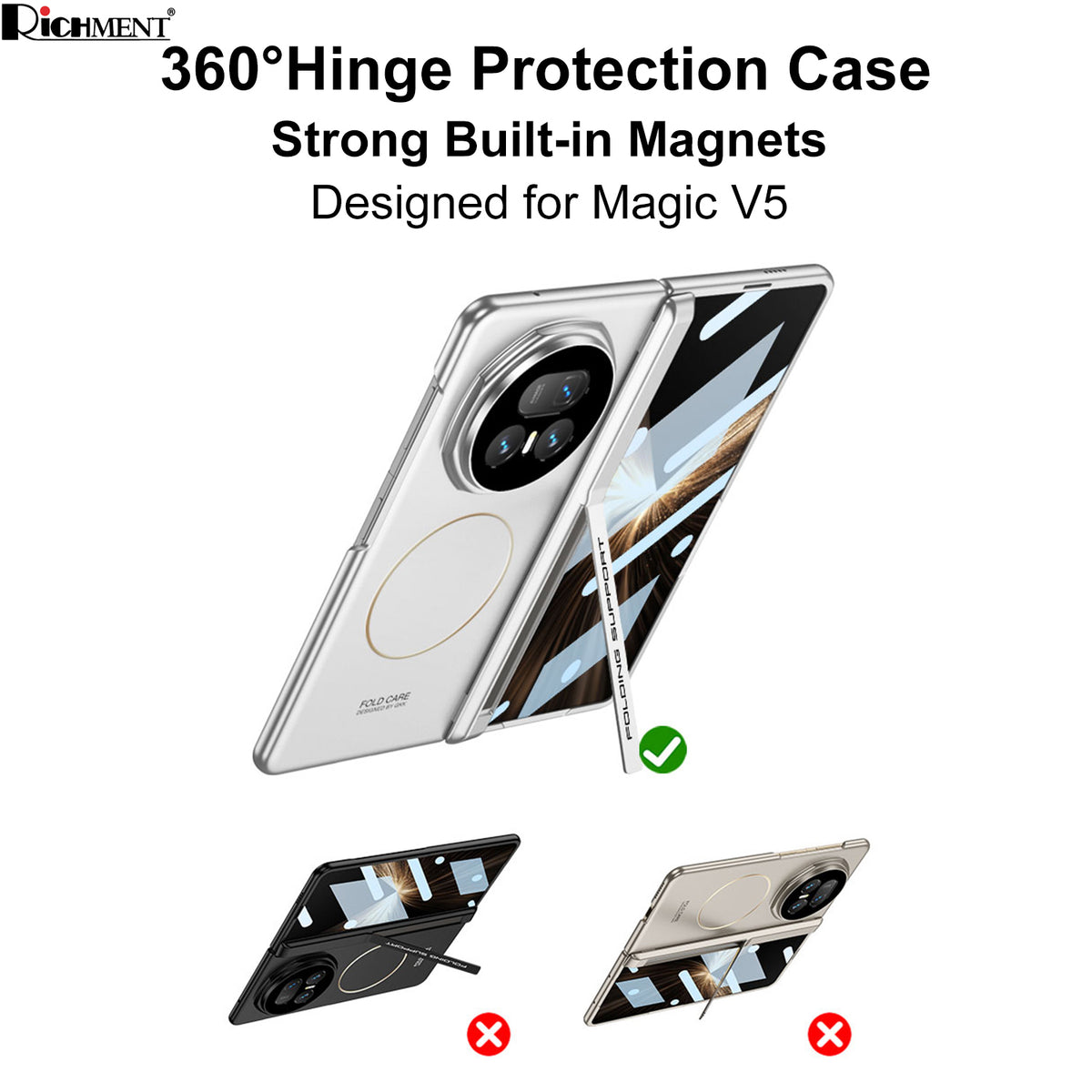 - [Compatibility]: This 360 Spin Ring Kickstand Case Compatible with Honor Magic V5, Please remove your original phone flim and all films on front cover before installation.