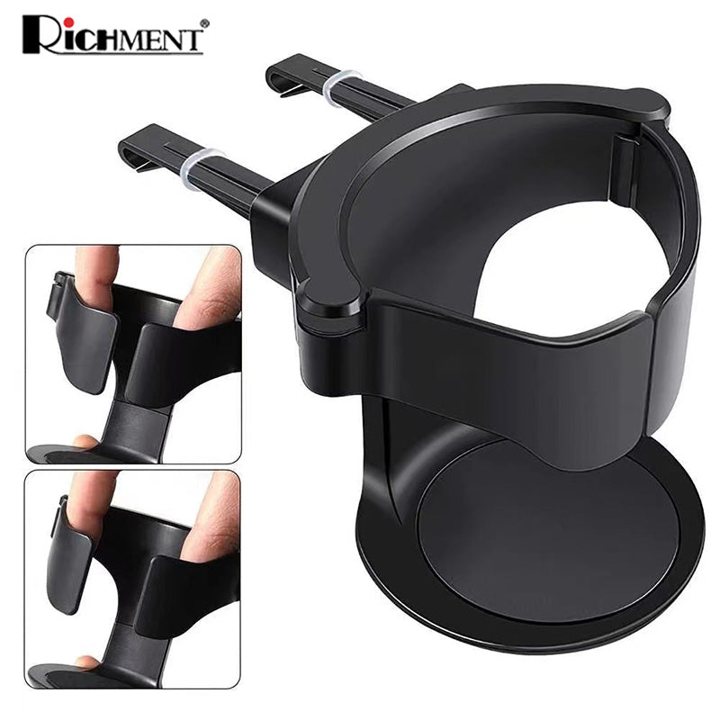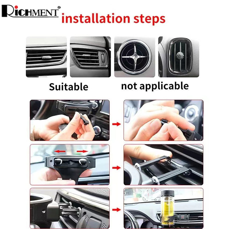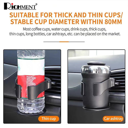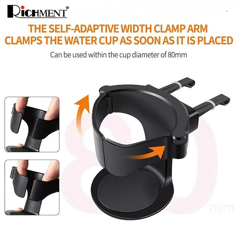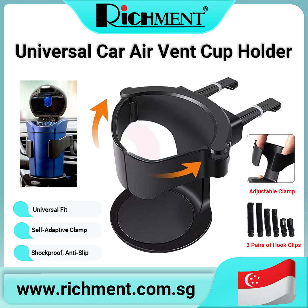 【✅SG Brand🔥】RICHMENT Universal Car Air Vent Cup Holder with Adjustable Clamp | Auto-Clamping Drink Mount with 3 Vent Clips | Adjustable Base | 360° Rotatable Drink Mount for Coffee, Bottles, Ashtray & Shockproof, Anti-Slip Fits 80mm Diameter Cups