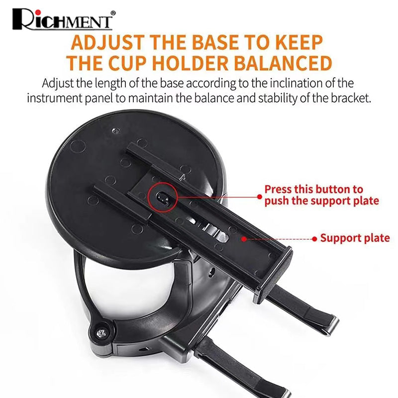 - Base length can be adjusted to compensate for slanted dashboards, keeping your drink holder level and steady.