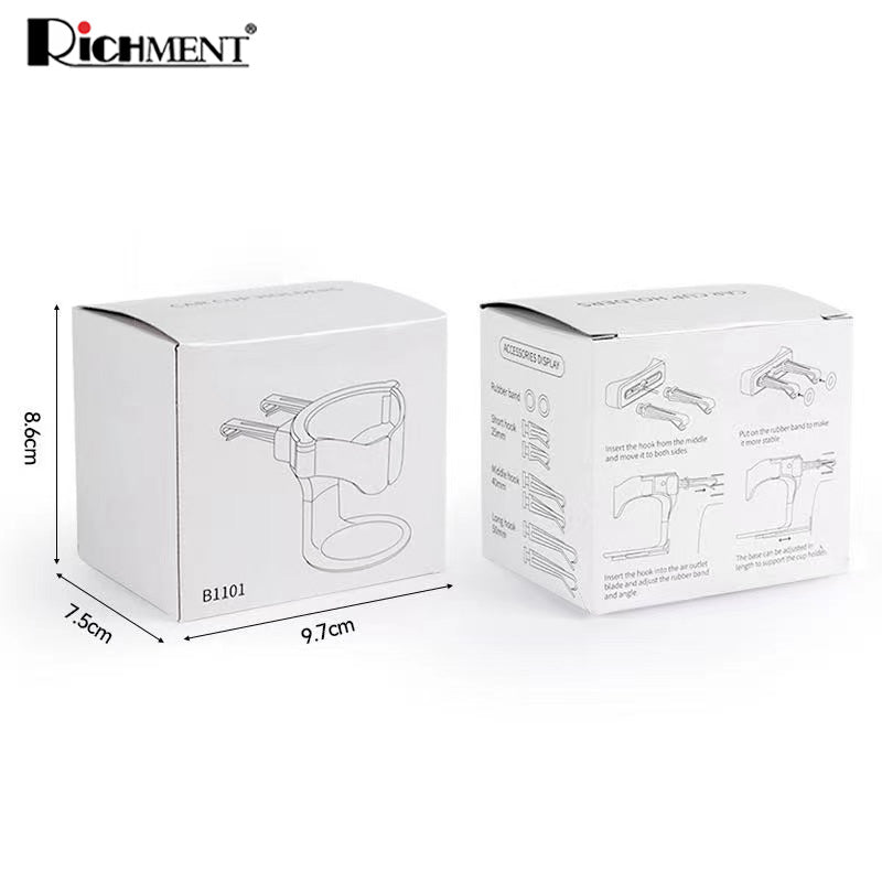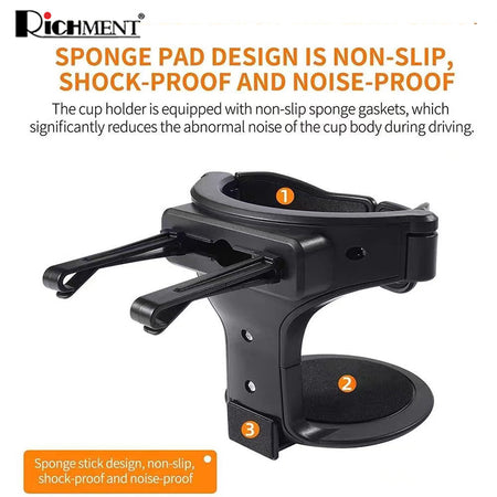- Keep your beverages secure and within reach with this Universal Car Air Vent Cup Holder. Designed with an adaptive clamp arm and noise-proof sponge padding, it ensures your drinks stay stable, quiet, and spill-free — even on bumpy rides.