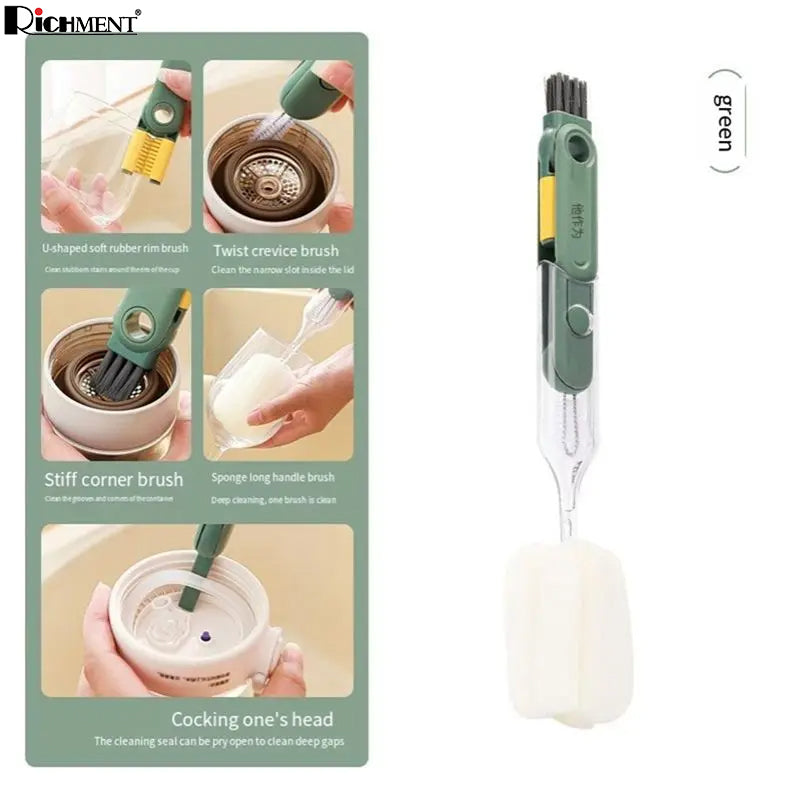 - This water bottle cleaner brush features a removable brush, U-shaped gap brush, slit brush, corner brush, and seal remover – perfect for tackling every nook and cranny!