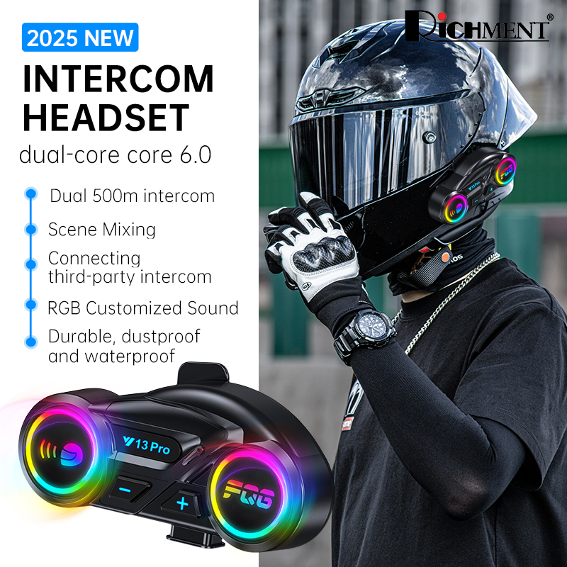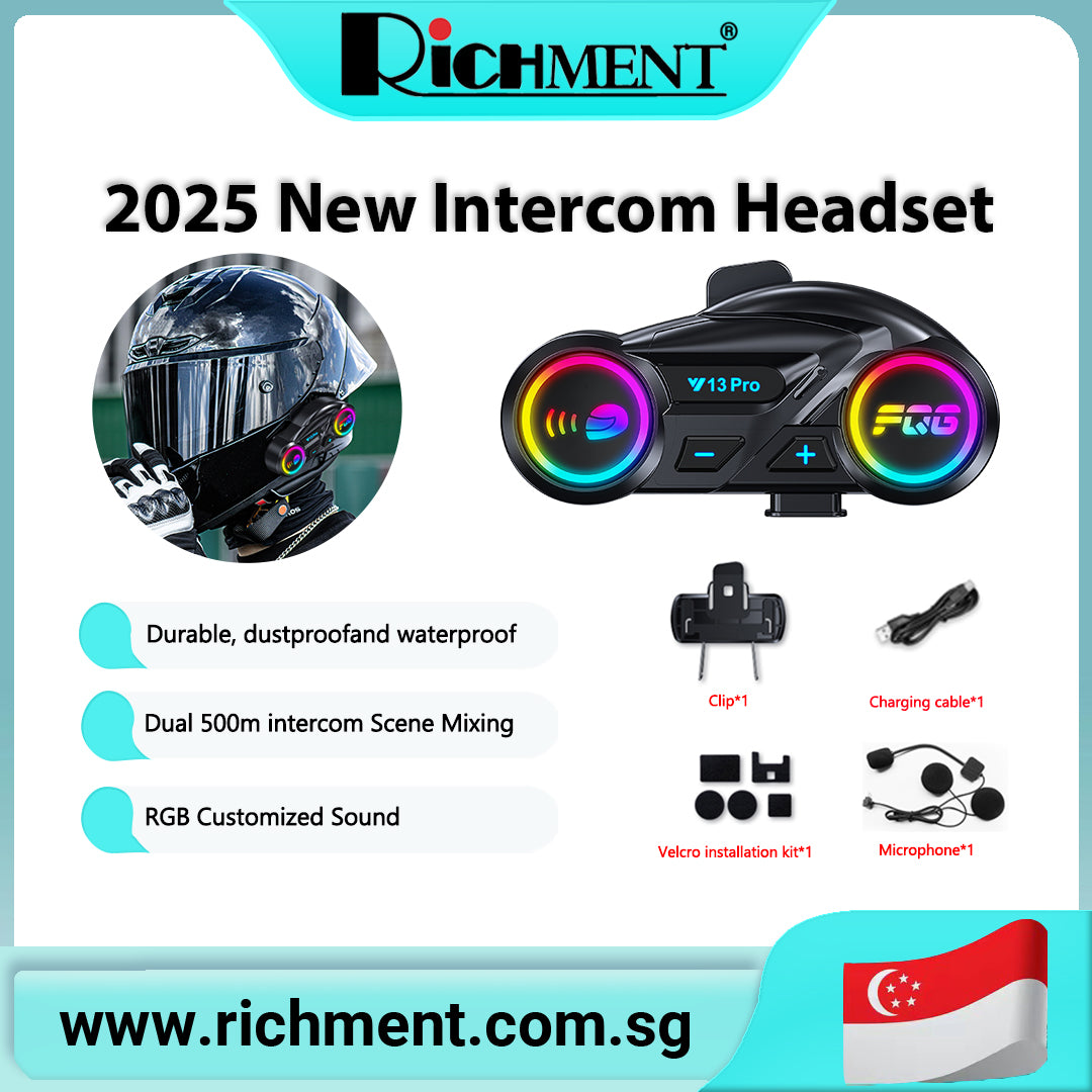 【✅SG Brand🔥】RICHMENT Y13 Pro 2-in-1 Integrated Hard-Shell Helmet Headset with LCD Screen and Flashlight Featuring Intercom Functionality