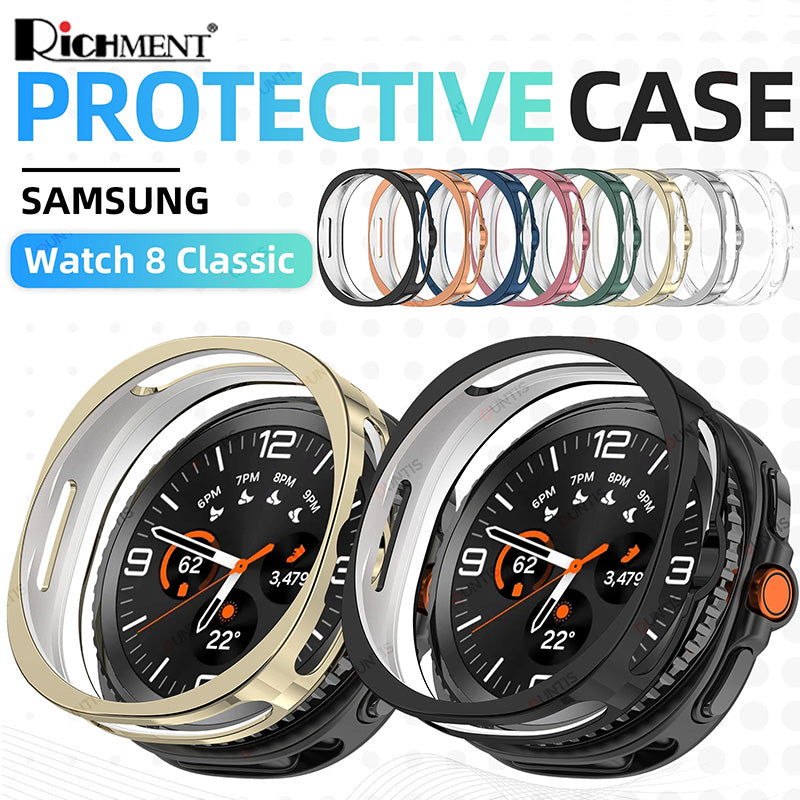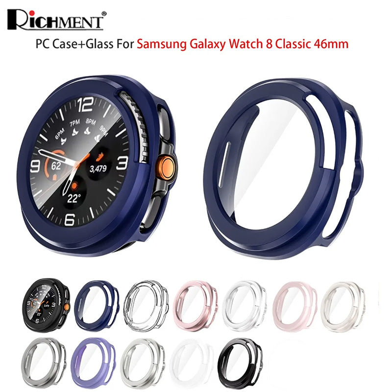 【✅SG Brand🔥】RICHMENT Samsung Galaxy Watch 8 Classic 46mm Case with Screen Protector – Full Coverage Hard PC Bumper with Built-in Tempered Glass, Scratch-Resistant, Slim Fit Protective Cover