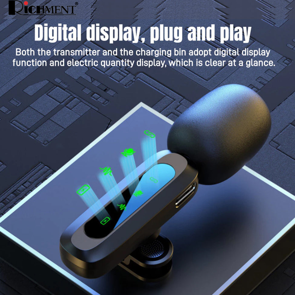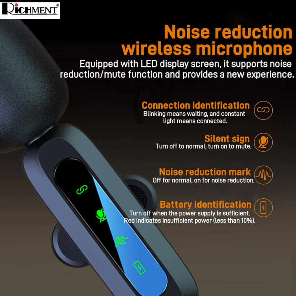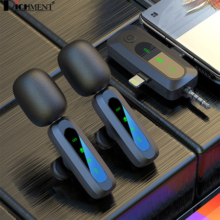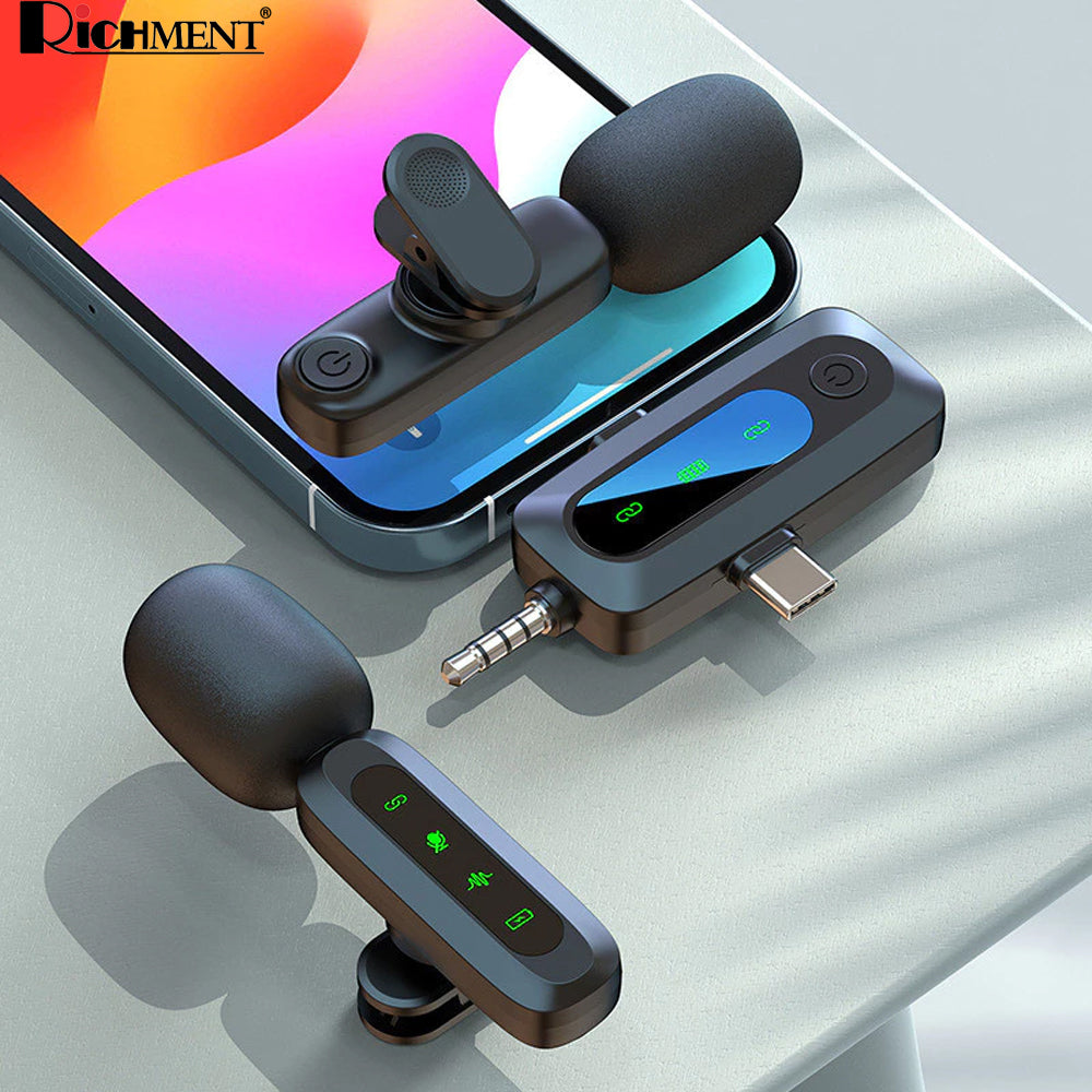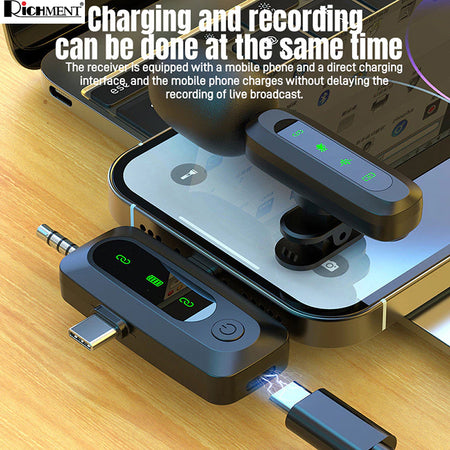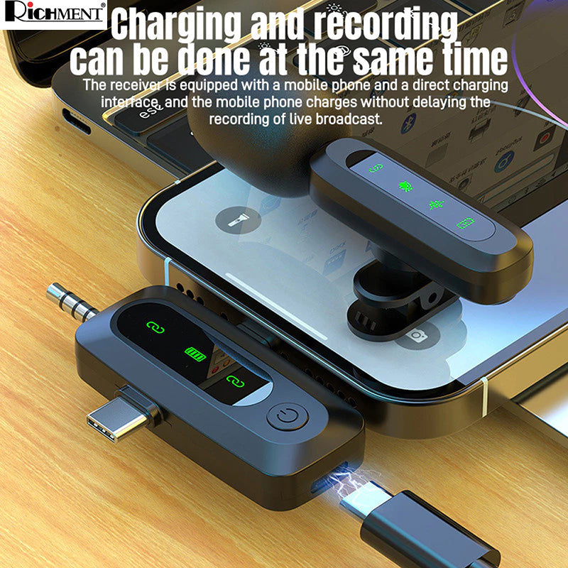 - RICHMENT mini microphone is simple to use—no Bluetooth, no apps, no adapters required. Just press and hold the power button on the receiver, plug it into your device (Lightning/Type-C/3.5mm), and turn on the microphone. The two parts will pair automatically within seconds.