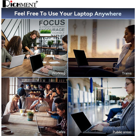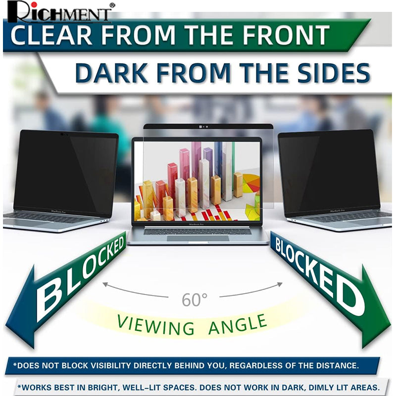 - Clear from the front, dark from the sides. Blocks unwanted views from a 60° angle, giving you peace of mind in public spaces like cafes, trains, offices, or airports.