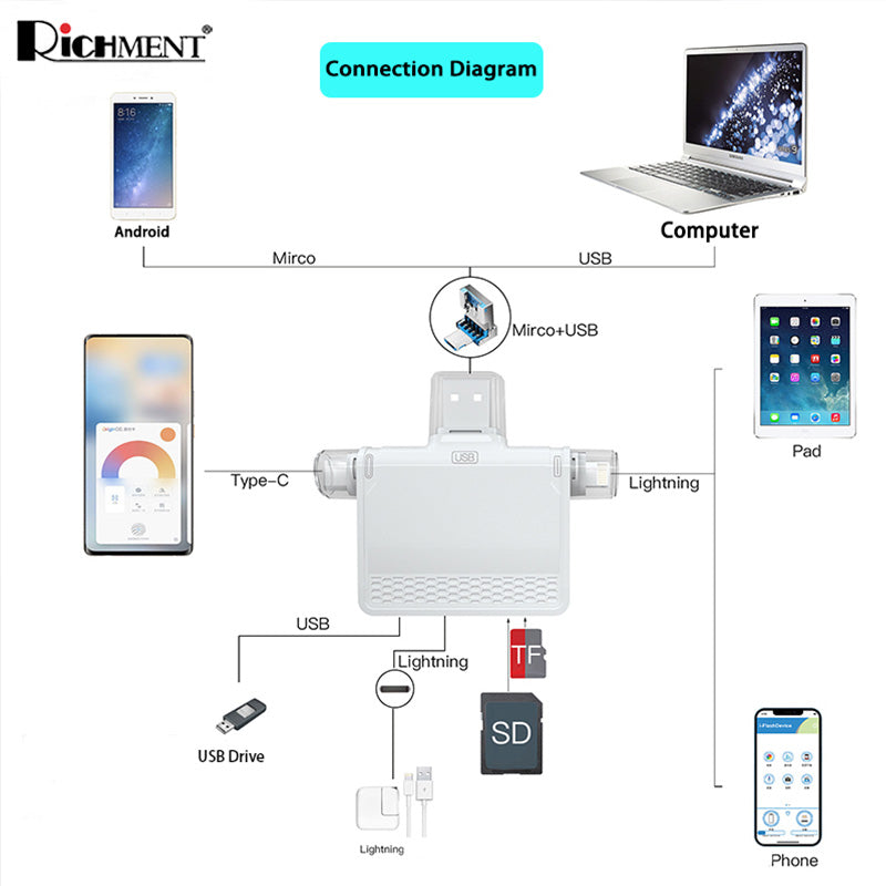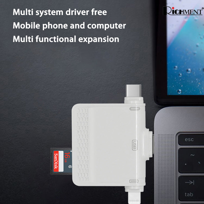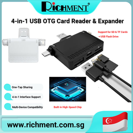 【✅SG Brand🔥】RICHMENT 4-in-1 USB OTG Card Reader & Expander – Lightning / Type-C / Micro USB / USB Adapter for Phone, Tablet, Computer – Plug & Play, High-Speed Transfer |🎁 Perfect Gift for Birthday & Christmas