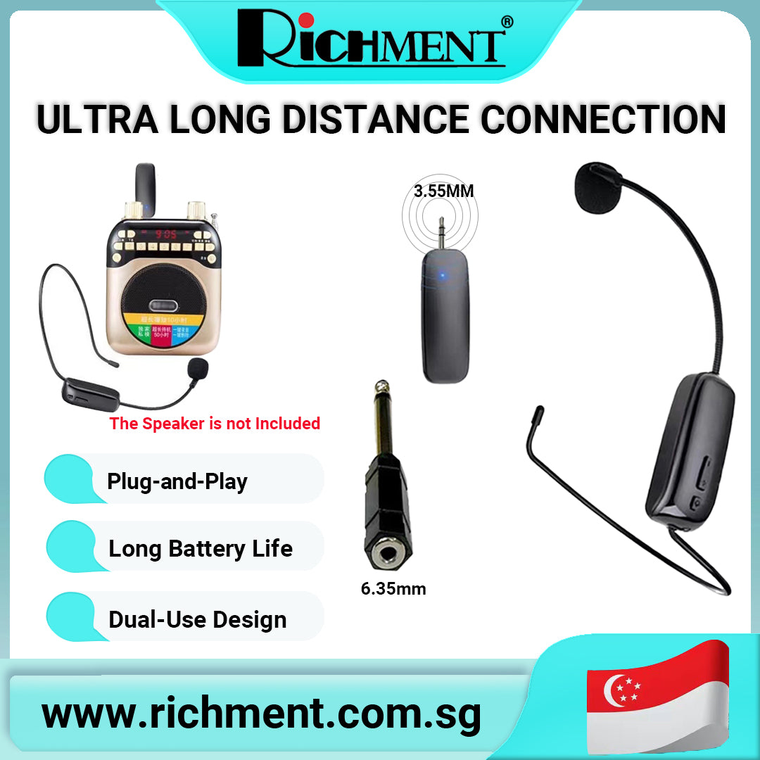 【✅SG Brand🔥】RICHMENT 2 In 1 Wireless Microphone Headset,2.4G Wireless Mic System,164ft(50M) Headset and Handheld for Teaching,Sport Yoga,Tour Guide,System,Voice Amplifier,Window Speaker,PA System